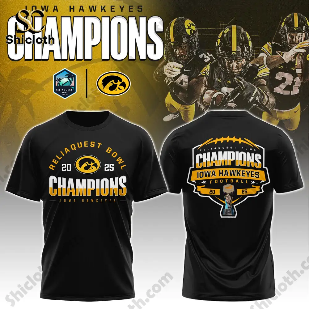 Click the link to grab your favorite style from the Iowa Hawkeyes ReliaQuest Bowl Champions 2026 collection today and wear your black and gold with pride!.