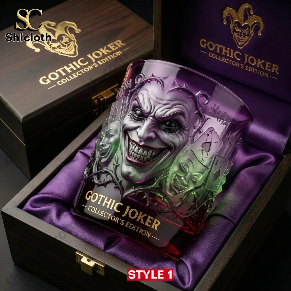 This Joker and Harley Quinn whiskey glass set is the ultimate collector’s duo for fans of the iconic Gotham pair. Each glass features a stunning 3D-sculpted design: the Joker glass is wrapped in deep purple and vibrant green hues with his menacing grin and “HAHA” engravings, while the Harley Quinn glass glows in bold red and white, featuring her playful yet chaotic expression and lipstick kiss marks. These premium whiskey glasses are crafted from high-quality, crystal-clear glass and come nestled in a luxurious wooden collector’s box lined with soft satin, making them a high-end decorative piece as much as a functional drinkware set.