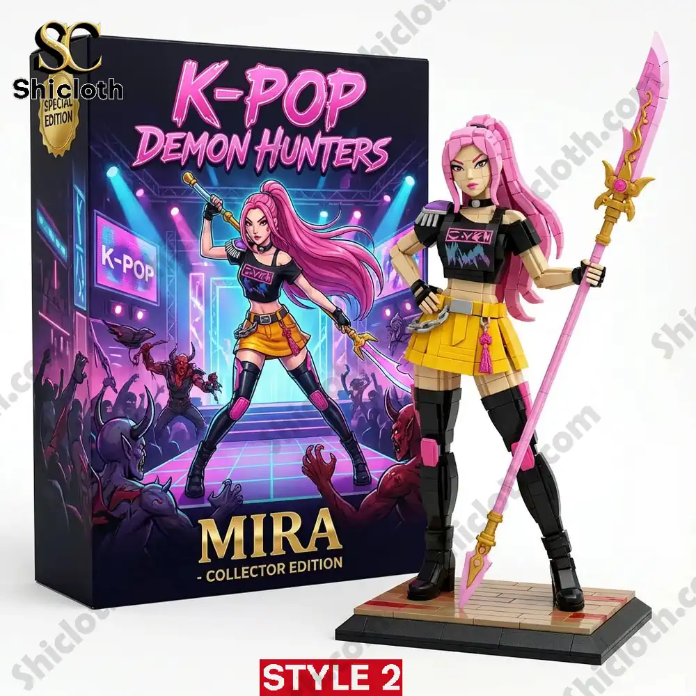 The K-pop Demon Hunters Brick Edition is a unique fusion of vibrant idol aesthetics and action-packed storytelling, offering fans a high-quality building experience. This collector series features three distinct characters—Rumi, Mira, and Zoey—each meticulously designed with their own signature color palettes and specialized hunting gear. From Rumi’s bright yellow biker jacket and purple braided hair to Mira’s striking pink spear and Zoey’s tactical teal outfit with dual daggers, every set includes articulated brick-built figures, detailed instruction manuals, and exclusive collector items like enamel pins, stickers, and acrylic stands.