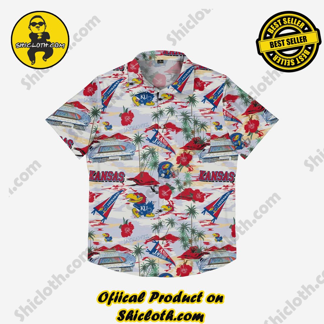 Shicloth store offers a stylish and comfortable Kansas Jayhawks Thematic Stadium Print Button Up Shirt set that will make you stand out in any crowd. The Kansas Jayhawks Thematic Stadium Print Button Up Shirt Made from high-quality materials, this set is designed to be both durable and comfortable, ensuring that you can wear it for any occasion. The palm tree pattern on both the shirt and shorts adds a tropical feel to the set, making it perfect for summertime events or even just lounging at home. The shirt features a button-up design and a pointed collar, while the shorts have an elastic waistband for a comfortable fit. The logo is prominently displayed on both the shirt and shorts, allowing you to show your support for your favorite team. Despite its high quality, Kansas Jayhawks Thematic Stadium Print Button Up Shirt are available at a very reasonable price, making it a great value for anyone looking to add some stylish new items to their wardrobe. So what are you waiting for? Grab yours today and show your love for the Kansas Jayhawks Thematic Stadium Print Button Up Shirt in style and comfort !
