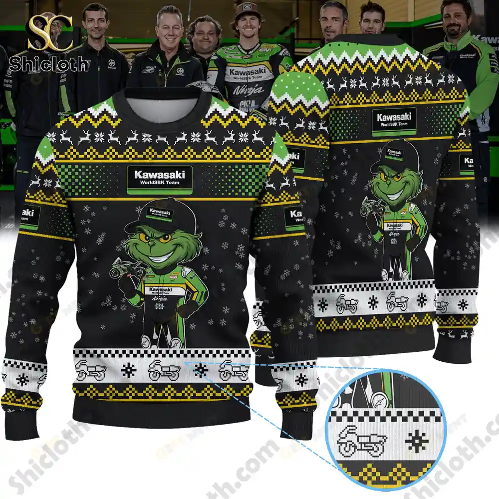 Overview Of Kawasaki WorldSBK Team x Grinch Ugly Christmas Sweater