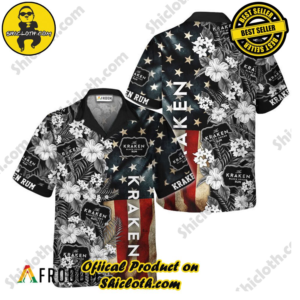 Kraken Rum American Flag Tropical Flower Hawaiian Shirt