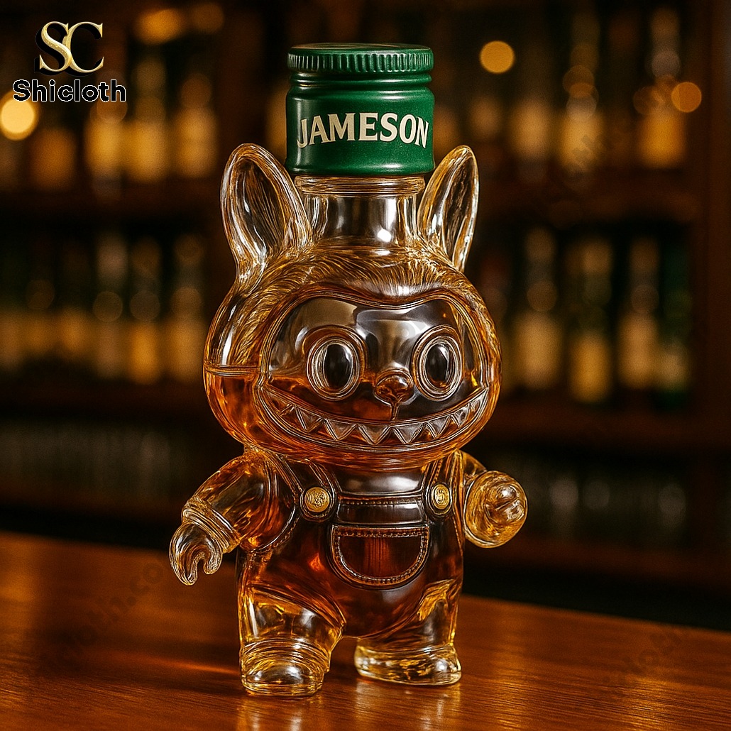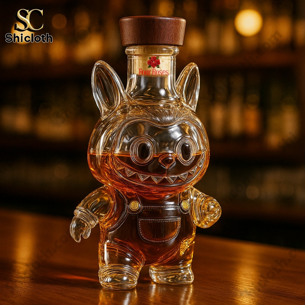 To keep your bottle looking brand new, we recommend hand washing with a soft sponge and mild soap. Avoid using abrasive scrubbers that might scratch the detailed glass molding. When filling, use a small funnel to pour in your whiskey or wine smoothly. This bottle looks best when placed under warm LED lighting on a bar cart, as the light reflects off the custom-shape glass contours. You can even pair it with matching Labubu figurines or themed glassware to create a complete aesthetic vibe in your living space.