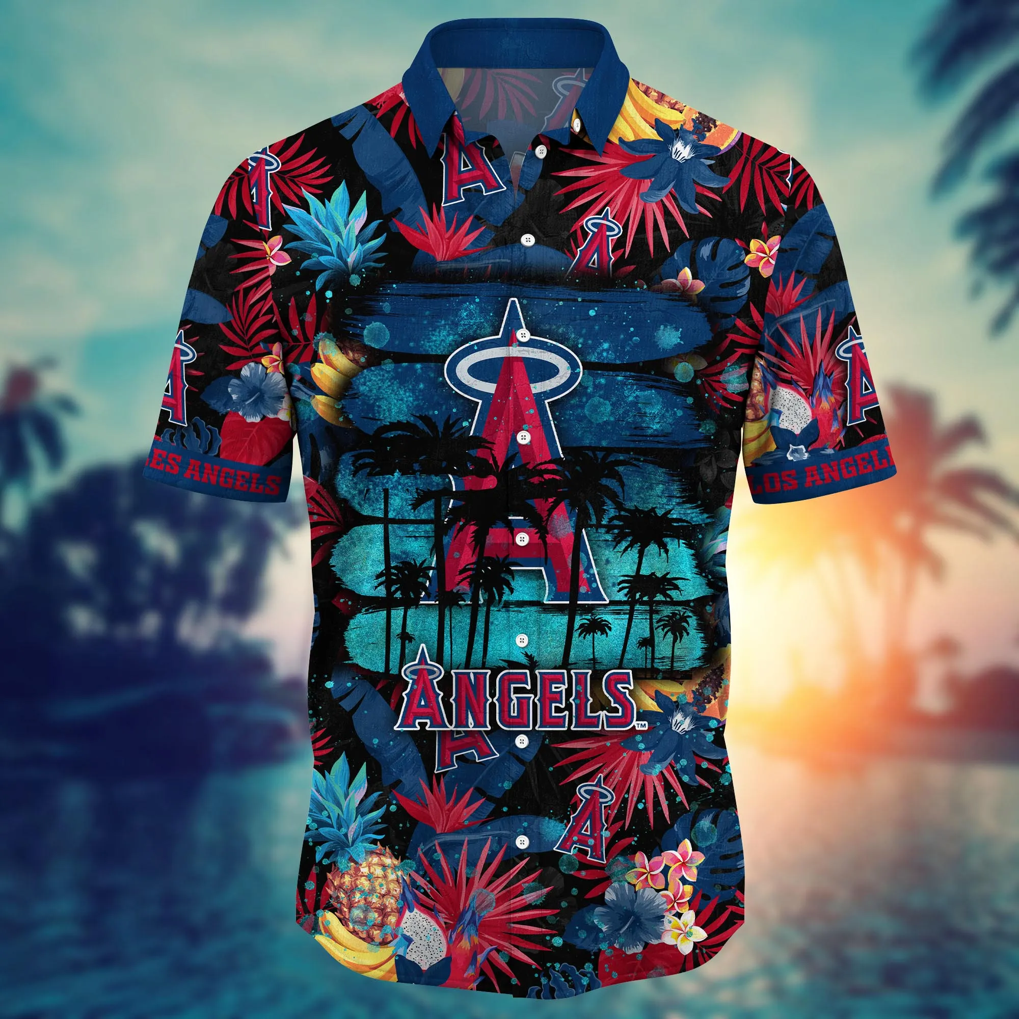 Step into the summer spirit with the Los Angeles Angels MLB Hawaiian Shirt Hiking Aloha Shirt. This vibrant and eye-catching shirt combines the iconic Los Angeles Angels logo with the relaxed and breezy style of a Hawaiian shirt. The shirt features a colorful print of palm trees, hibiscus flowers, and the Angels logo, creating a bold and tropical look. The lightweight cotton fabric offers breathable comfort, while the button-down closure and spread collar provide a classic and sophisticated touch. Whether you’re cheering on the Angels at the game, exploring hiking trails, or simply enjoying a casual outing with friends, this Hawaiian shirt is the perfect way to show your fandom and embrace the spirit of summer. Its vibrant colors and comfortable fit will turn heads wherever you go, making you the center of attention. Own it today and experience the joy of wearing a shirt that reflects your passion and style.