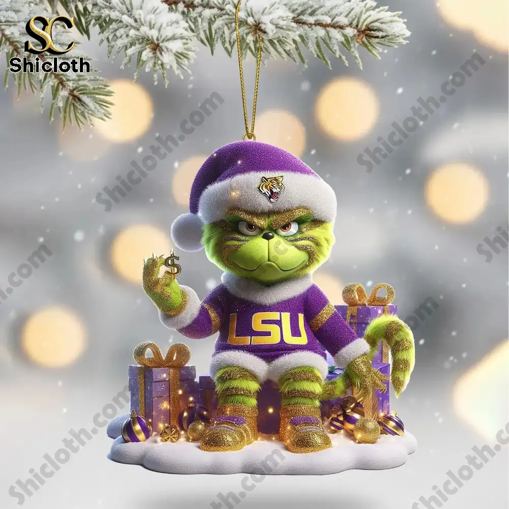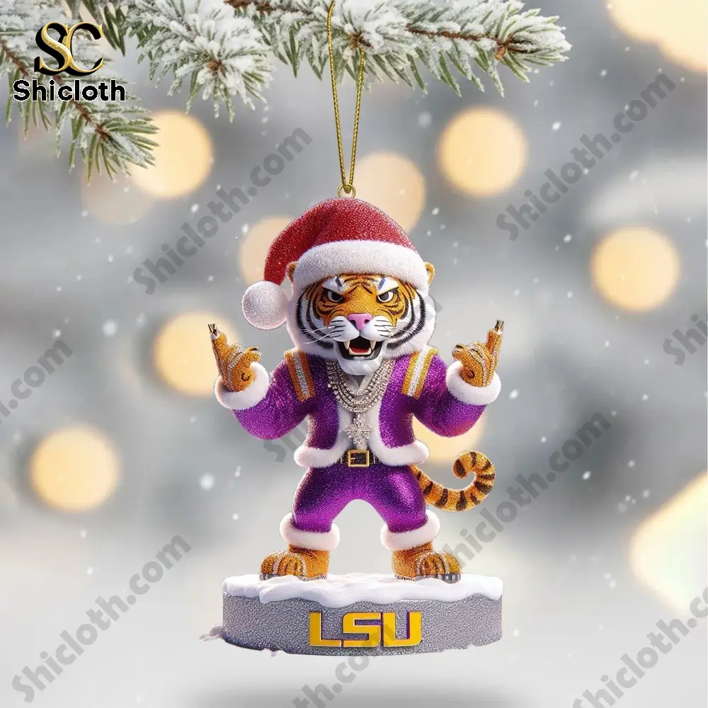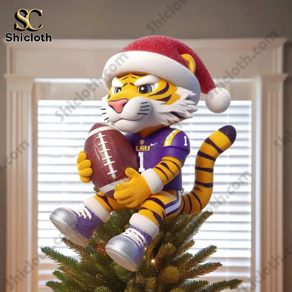 Get ready to deck the halls with true Bayou Bengal spirit! This is the ultimate 2025 Tree Topper and Ornament Set for any LSU faithful, blending the excitement of Death Valley Saturdays with classic holiday charm. The collection features a variety of unique, vibrant pieces, all drenched in the iconic Purple and Gold. You’ll find a magnificent Tree Topper featuring the LSU Tiger mascot, dressed in a Santa hat and jersey #1, sitting proudly atop your tree with a football. The ornaments themselves are equally spectacular, including a miniature Tiger Stadium replica, an iconic “LSU” logo wrapped in festive lights, and several creative mascot variations—like the beloved LSU Tiger striking a championship pose and the fan-favorite, mischievous LSU Grinch holding a dollar sign. Every detail, from the textured faux snow to the glittering accents on the tiger’s gear, captures the eye and ensures your tree is game-day ready.