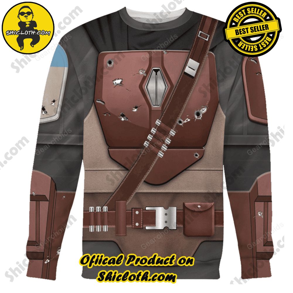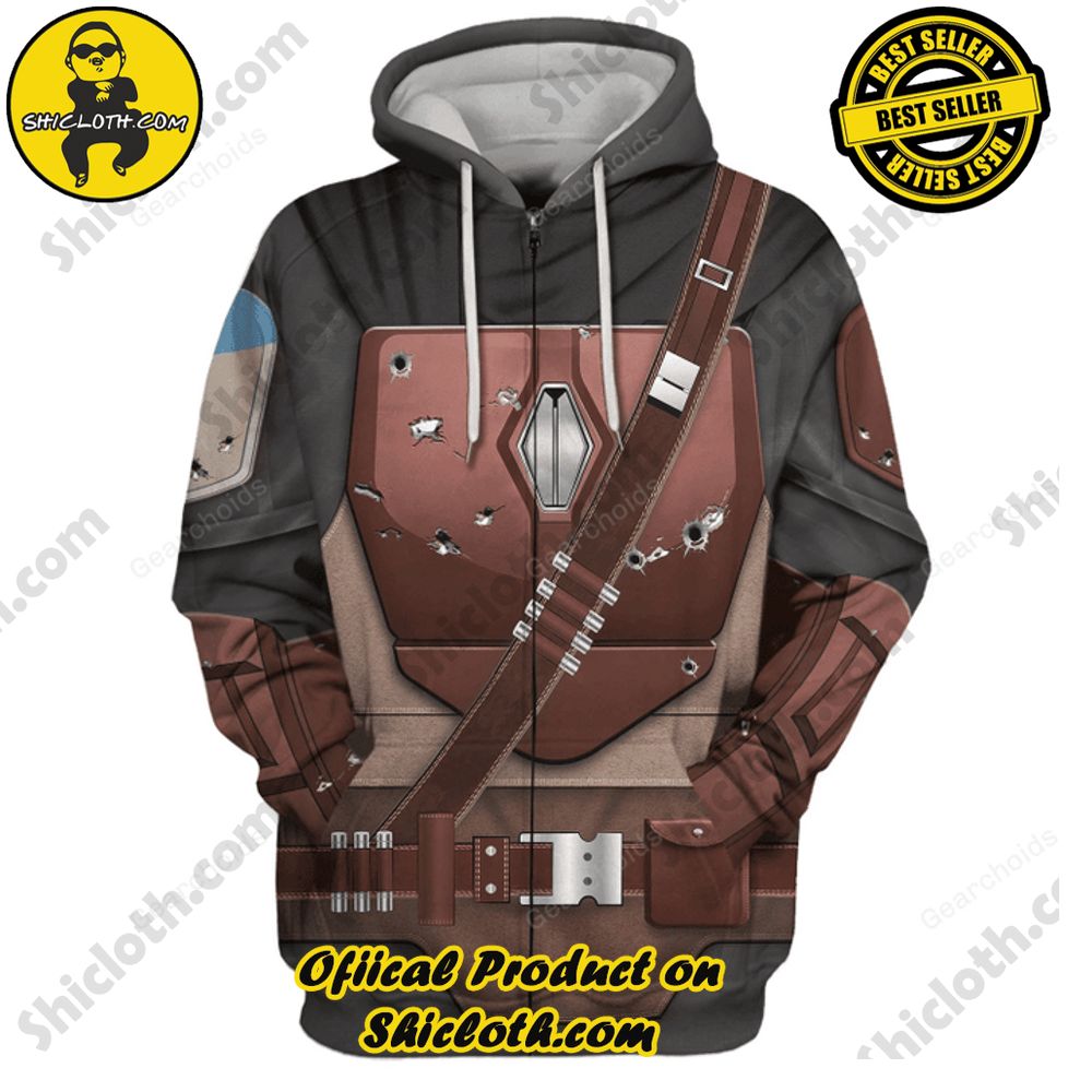 To complement the hoodie, we offer the Mandalorian Costume T-Shirt. Featuring a screen-printed design that mirrors the intricate details of the Mandalorian armor, this t-shirt is a versatile addition to your wardrobe. Wear it casually or as part of a cosplay outfit – the choice is yours. The soft and breathable fabric ensures maximum comfort, making it the perfect choice for everyday wear.