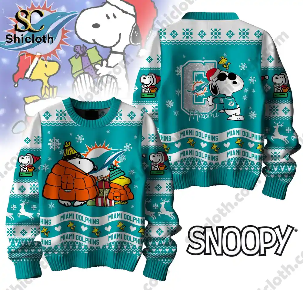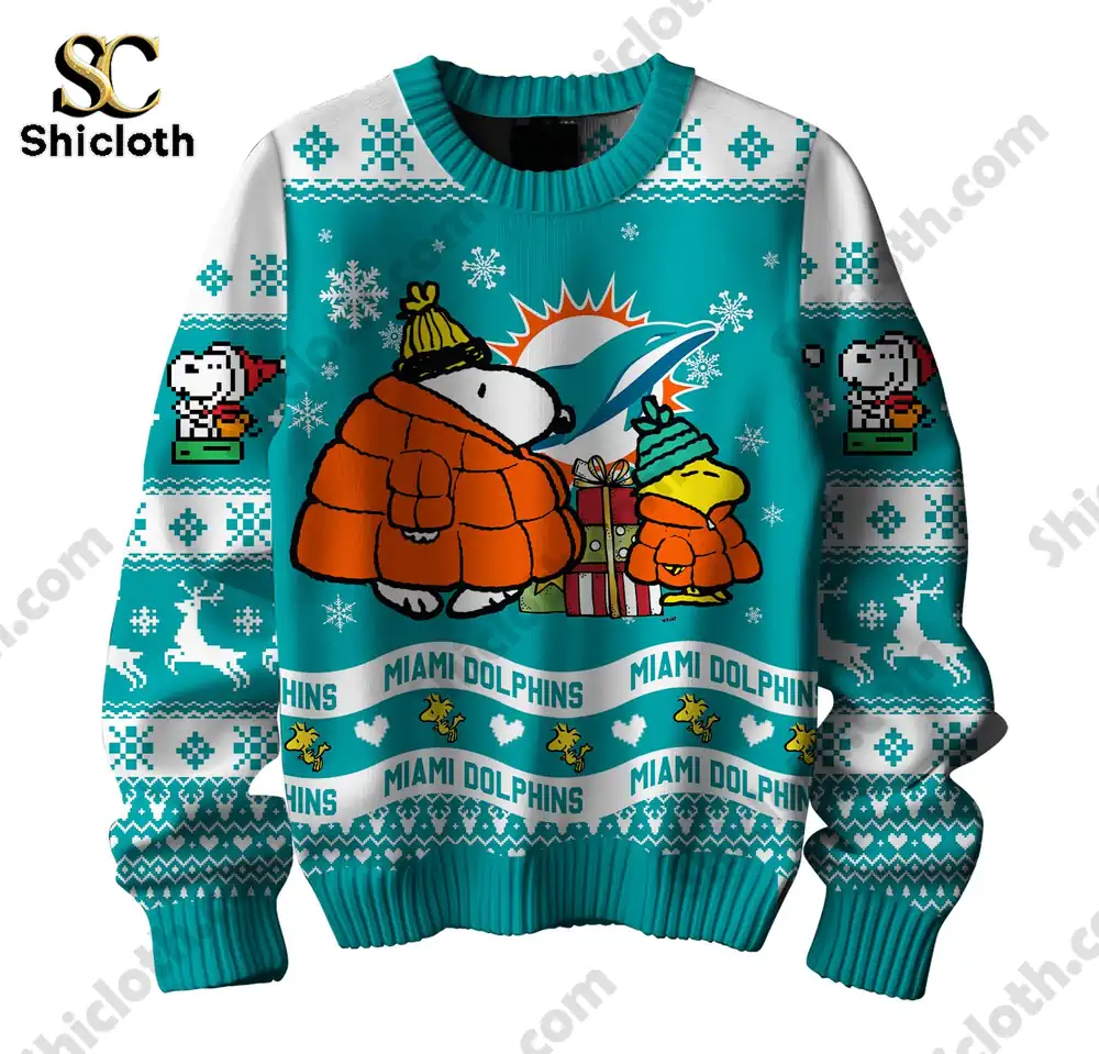 The Iconic Miami Dolphins x Peanuts Snoopy Ugly Sweater Design