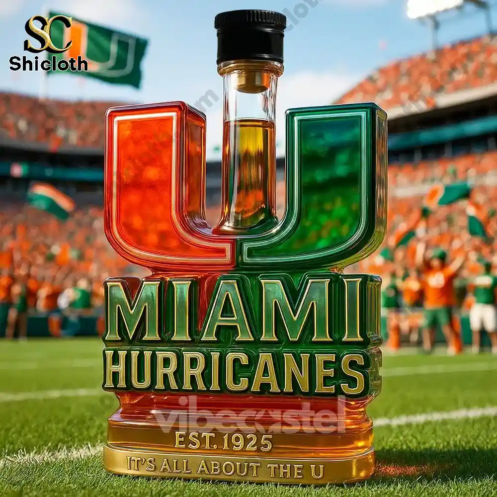 Get ready to rep your favorite college football dynasty—it’s All About The U! We are thrilled to introduce the Miami Hurricanes Limited Edition Christmas Whiskey Bottle, a stunning tribute to the five-time national champions! This collector’s piece perfectly embodies the swagger, tradition, and vivid colors of the Hurricanes, making it the absolute centerpiece for any holiday party, game day, or fan cave. This is a must-have item for alumni, students, and anyone who understands the power of ‘The U.’