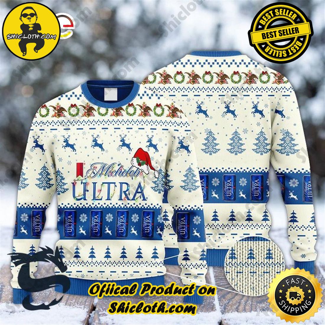Featuring a playful reindeer motif against a snowy night backdrop, the Michelob Ultra Reindeer Snowy Night Ugly Beer Sweater exudes a charm that is hard to resist. The sweater’s vibrant colors and intricate design make it an iconic addition to any festive wardrobe.