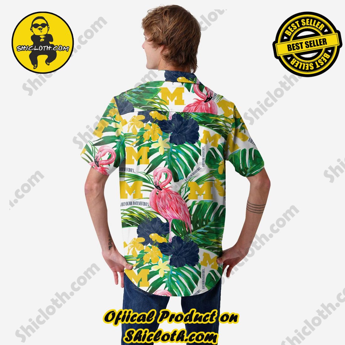 Information of Michigan Wolverines Flamingo Button Up Shirt: