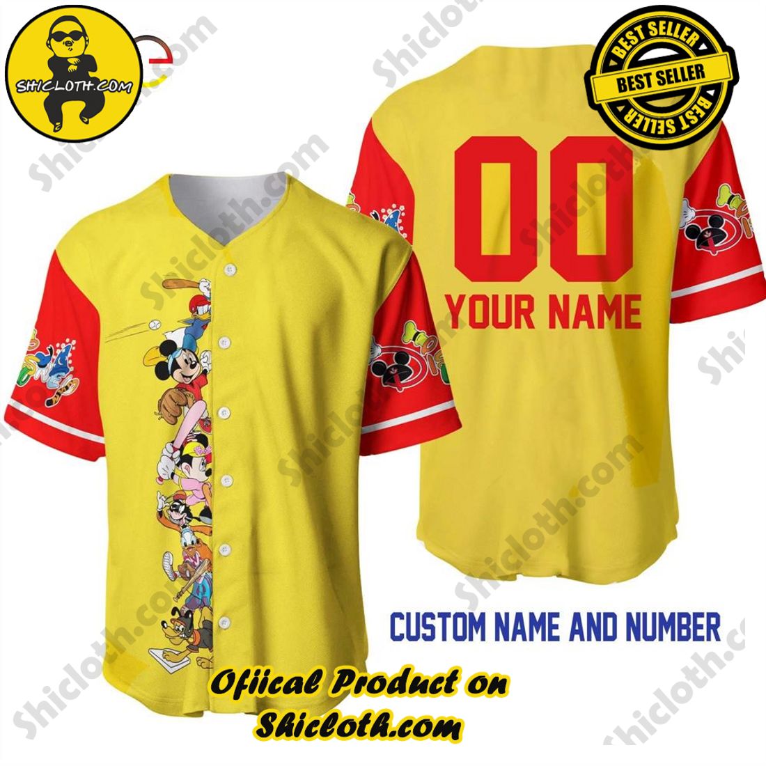From the grand stadiums to the cozy neighborhood ballparks, the sight of fans proudly sporting their team’s colors is a testament to the deep connection between baseball and its enthusiasts. Whether you’re a seasoned baseball aficionado or a newcomer to the game, an MLB jersey is a timeless symbol of unity and camaraderie.Mickey Minnie & Friends Yellow Red Custom Name And Number Baseball Jersey Shirt Each jersey tells a unique story, emblazoned with the team’s emblem, colors, and player numbers. From the storied franchises with decades of championship victories to the up-and-coming teams ready to make their mark, every MLB jersey carries a legacy.