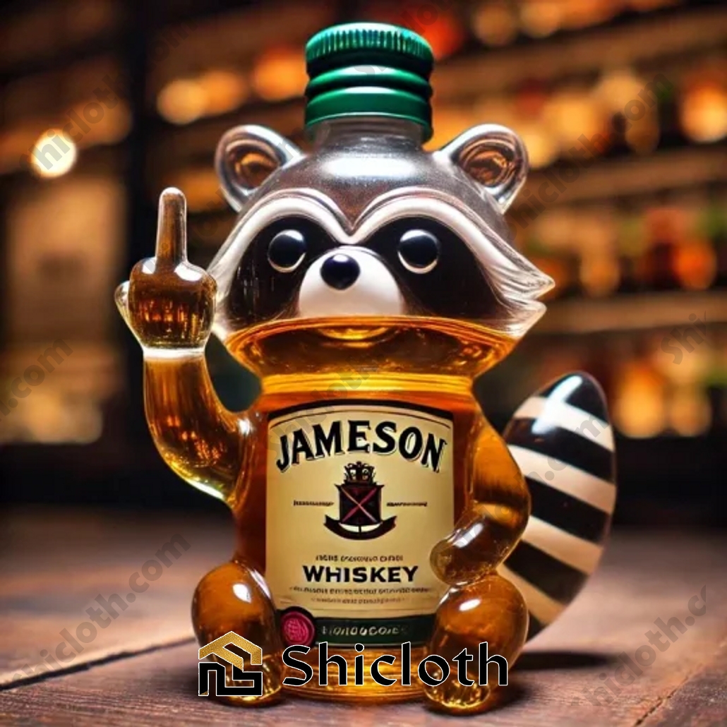 Overview of the Middle Finger Raccoon Whiskey Bottle: