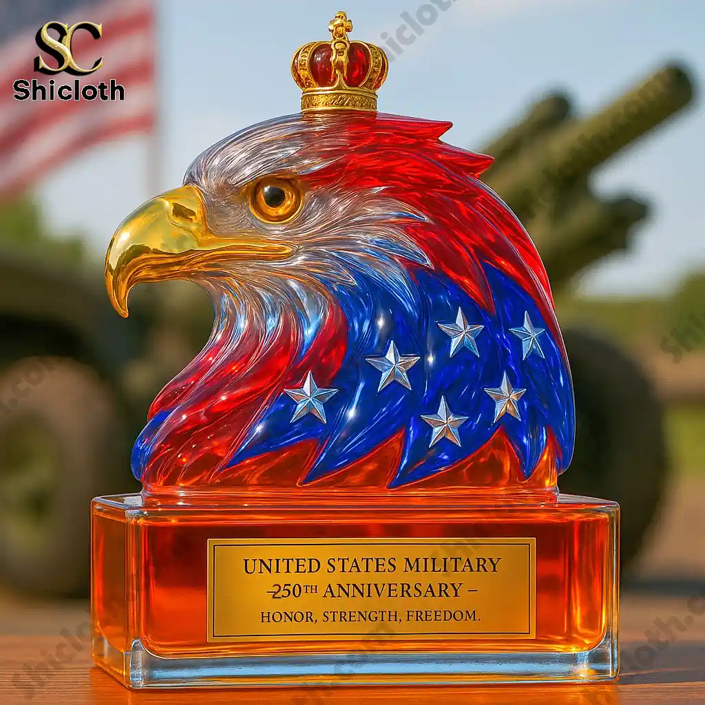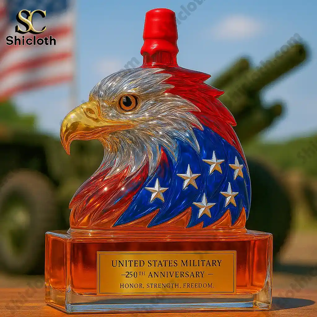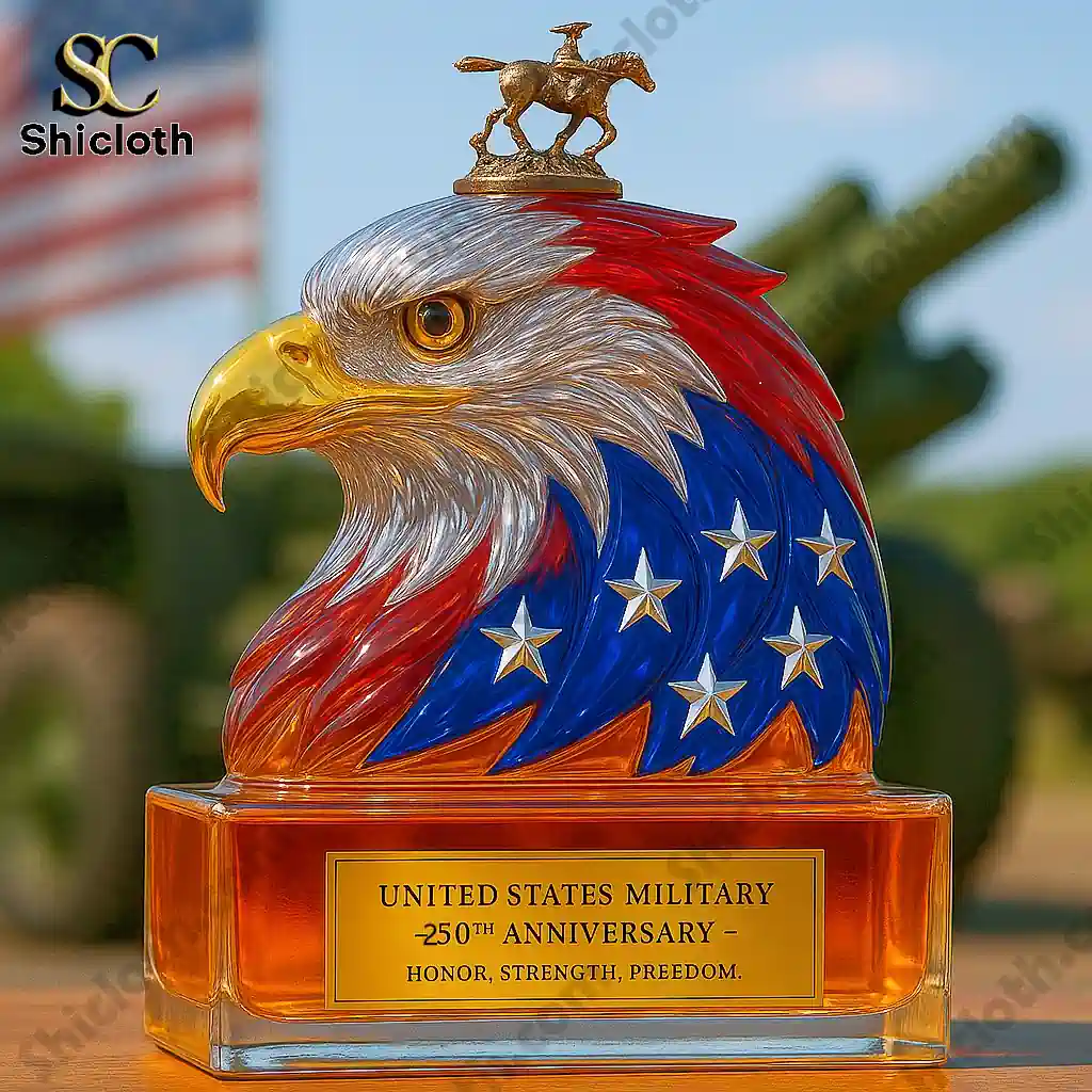 The United States Military is approaching a monumental milestone, and there is no better way to toast to two and a half centuries of bravery than with the Military 250th Anniversary Eagle Whiskey Bottle. This stunning collector’s item combines patriotic pride with a high-end barware aesthetic, featuring a meticulously crafted glass eagle head that sits atop a sturdy rectangular base. Whether you are a veteran, an active-duty service member, or a dedicated supporter, this bottle serves as a powerful symbol of “Honor, Strength, Freedom” and makes for an unforgettable centerpiece in any home office or man cave.