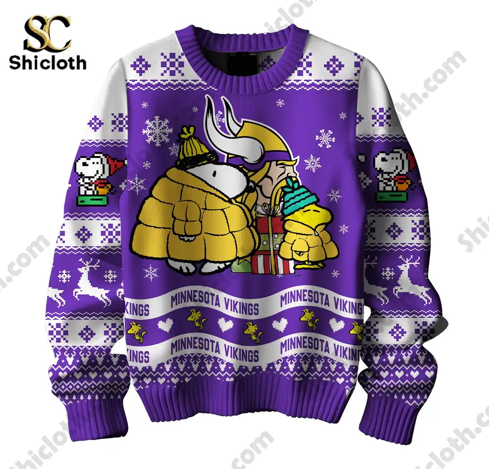 Overview Of Minnesota Vikings x Peanuts Snoopy Ugly Sweater