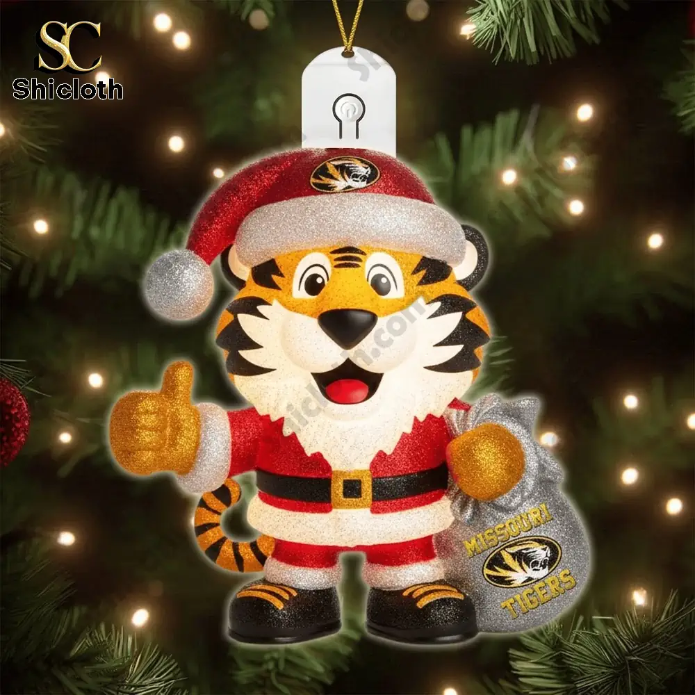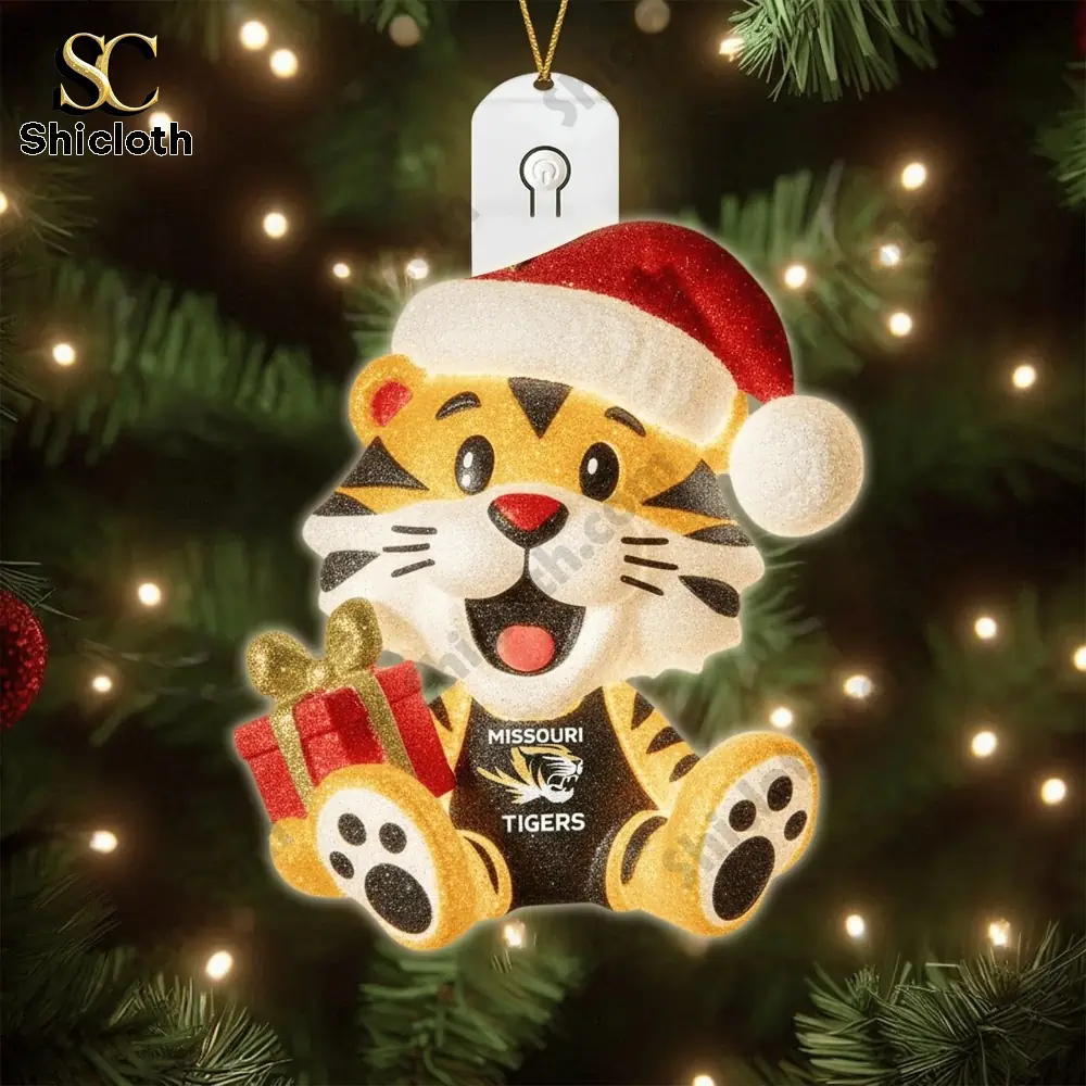 The set includes six different designs, ensuring your tree is covered in Tigers pride. You’ll get Truman the Tiger in various festive outfits and scenes: sitting in a classic red truck with a tree, dressed as Santa with a gift bag, holding a present, running with a football, relaxing in an armchair, and even a “MIZZOU-RAH” Grinch-themed ornament! Each design features the official Missouri Tigers logo and the team’s iconic black and gold colors.