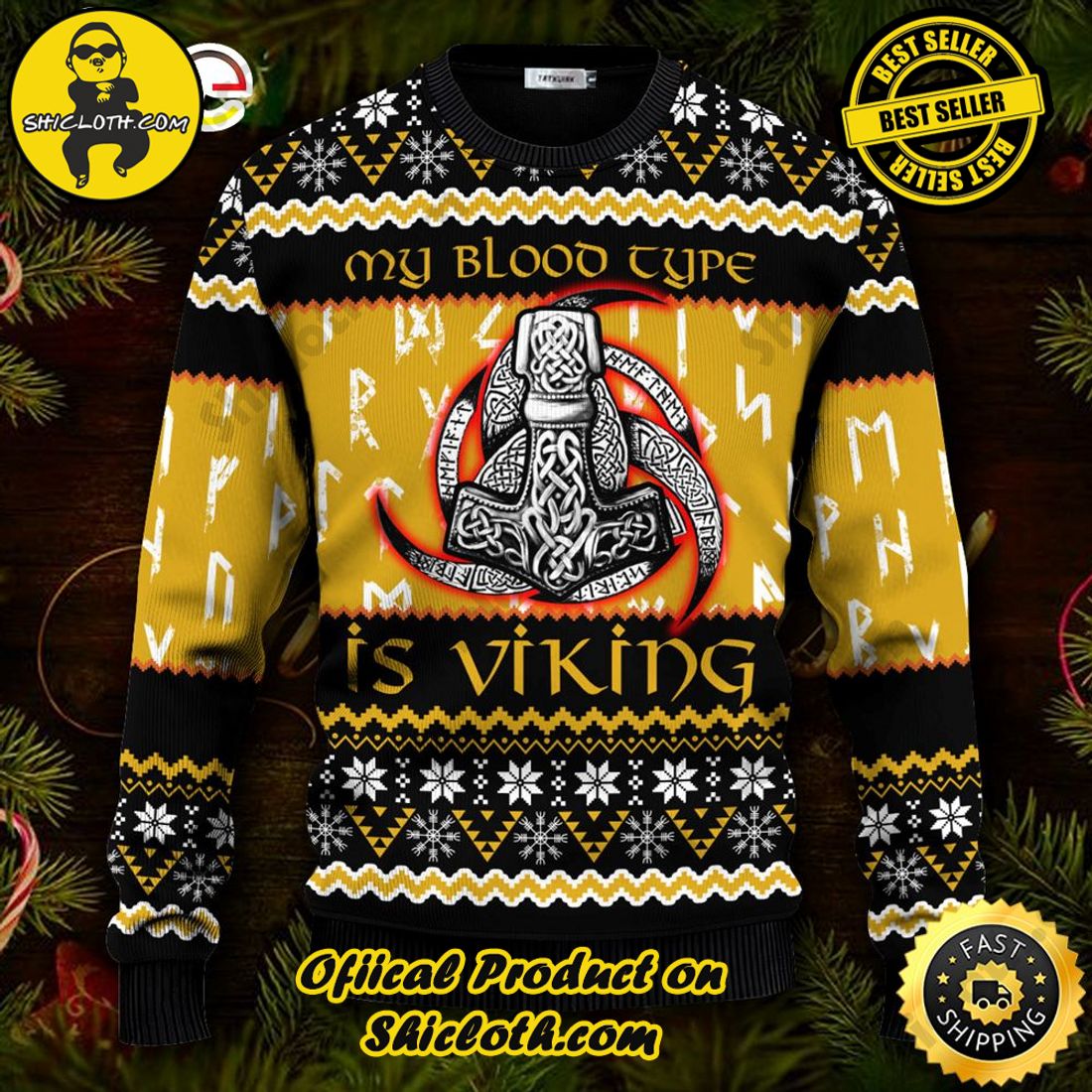 KEY FEATURES: My Blood Type Is Viking Ugly Christmas Sweater For Men & Women Christmas Gift Sweater