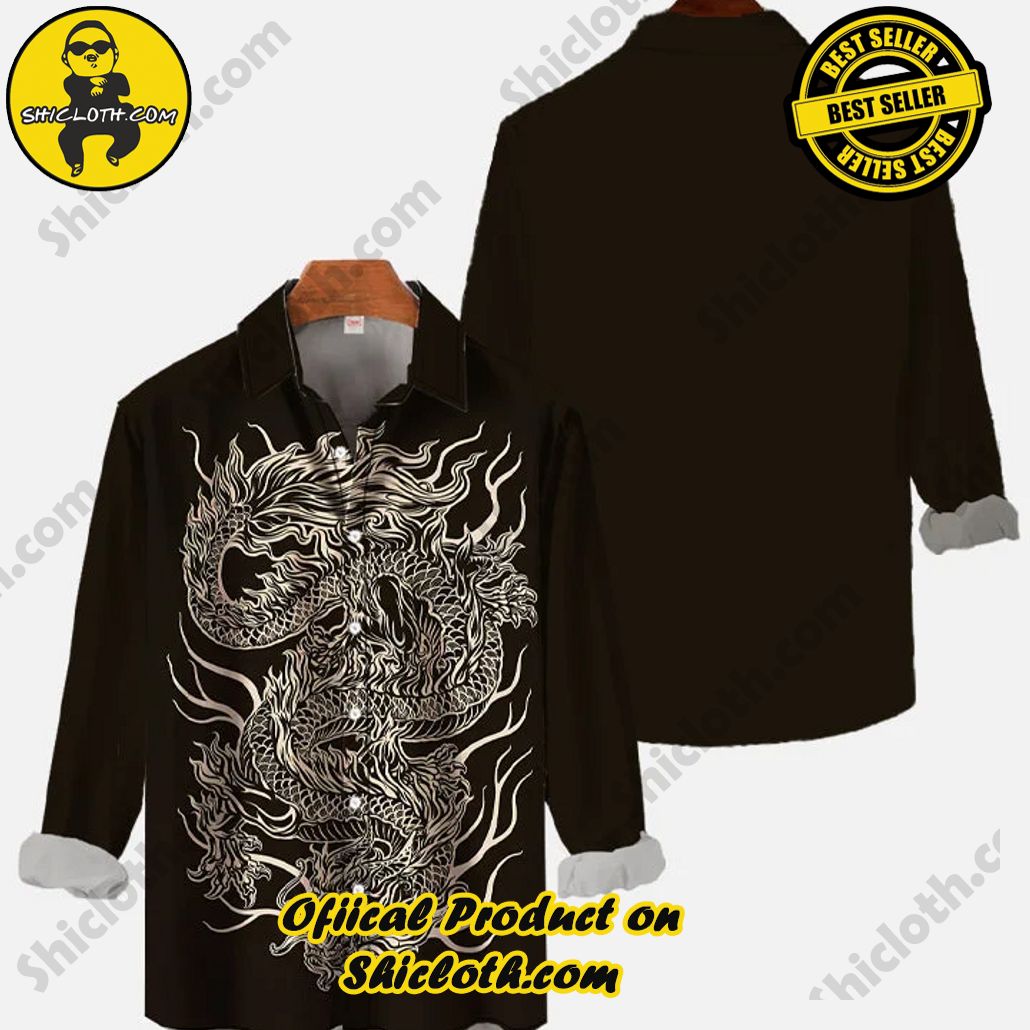 Mysterious Retro Divine Beast Dragon Totem Printing Long Sleeve Shirt