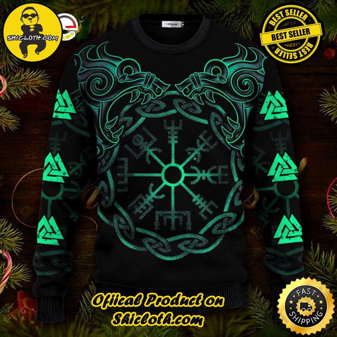 Embrace the spirit of the Vikings this Christmas and make a bold and unforgettable fashion statement with our Mythical Valknut Vegvisir Symbol Viking Ugly Christmas Sweater. Let this unique garment be the highlight of your winter wardrobe and a perfect Christmas gift for yourself or your loved ones.