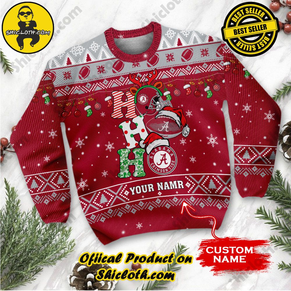 NCAA Alabama Crimson Tide Ho Ho Ho Custom Name Ugly Wool Sweater