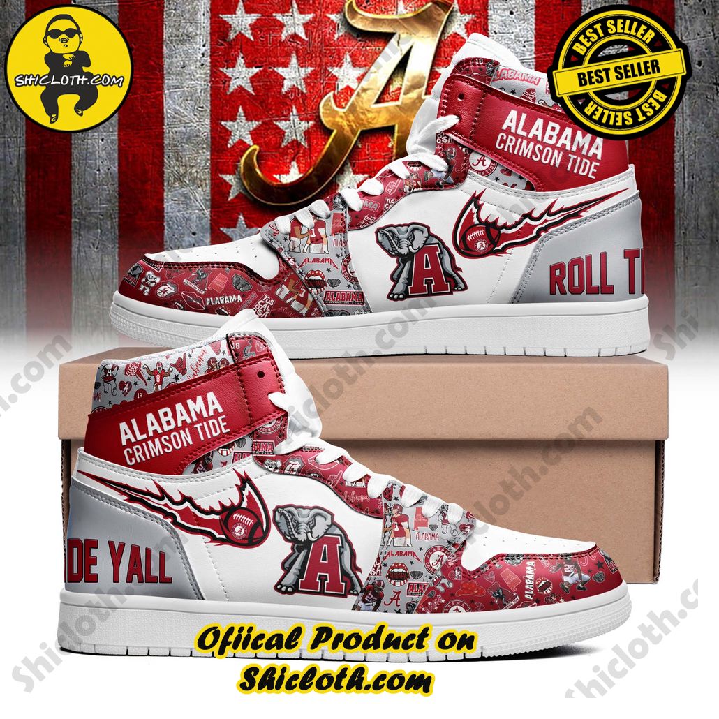 Product Information : NCAA Alabama Crimson Tide Roll Tide Yall Nike Air Jordan 1, Hightop Sneakers