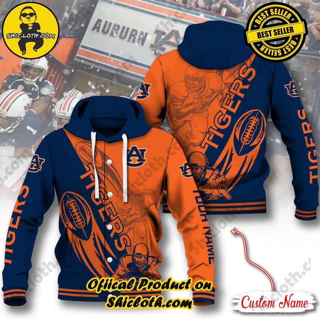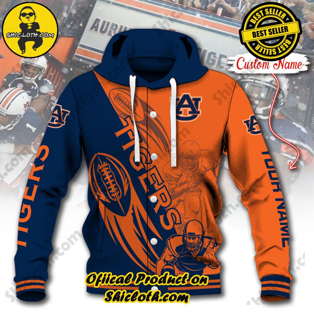 Overview of the NCAA Auburn Tigers Custom Name Baseball Jacket Hoodie: