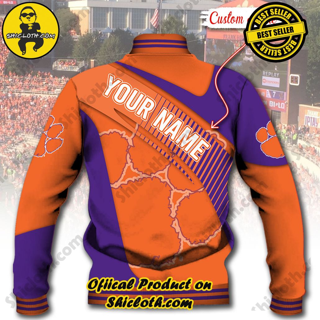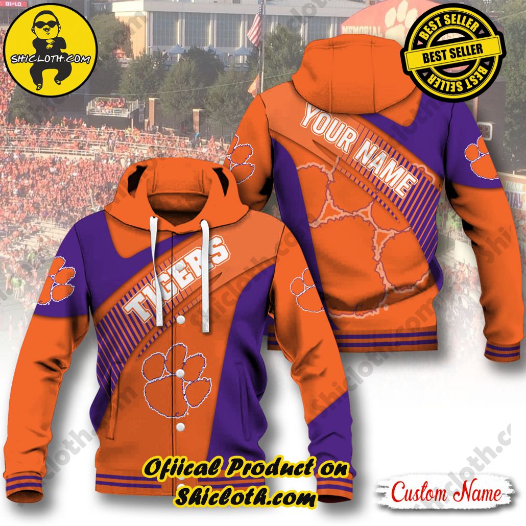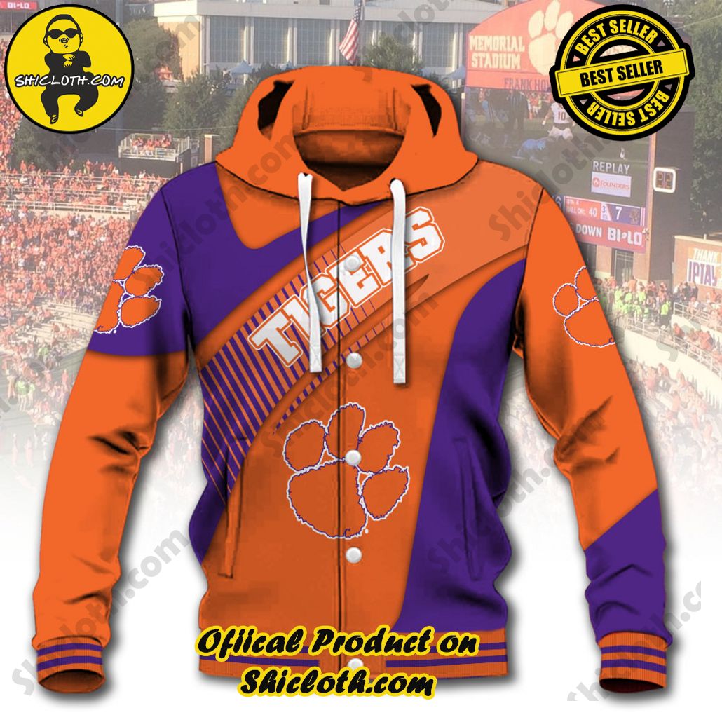 Overview of the NCAA Clemson Tigers Custom Name Baseball Jacket Hoodie New Ver: