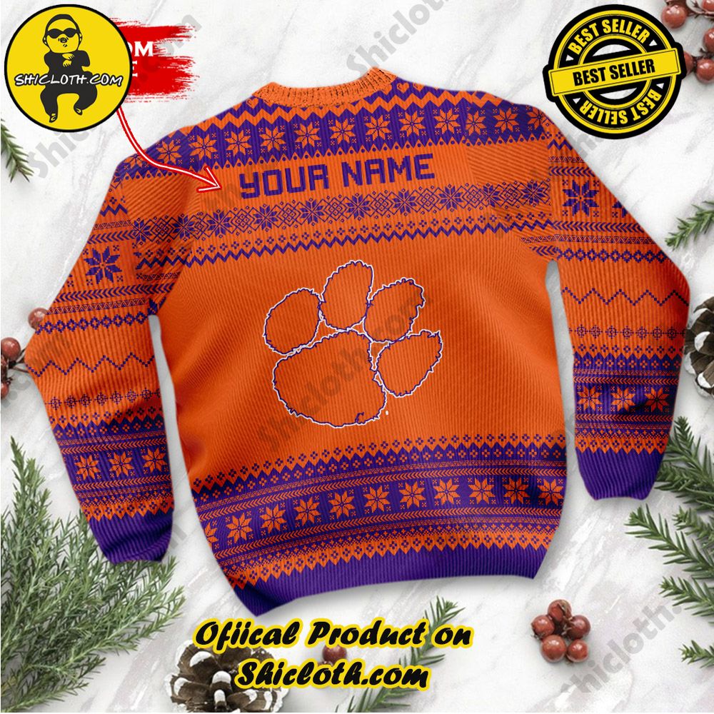 Introducing the NCAA Clemson Tigers Grinch Custom Name Ugly Christmas Sweater, the perfect way to show off your team spirit and holiday cheer! This festive sweater is not only affordable, but it also boasts the best product content in the market. Made with high-quality materials, it ensures durability and comfort throughout the holiday season. Our customizable option allows you to add your name, making it a unique and personal gift for yourself or your loved ones.