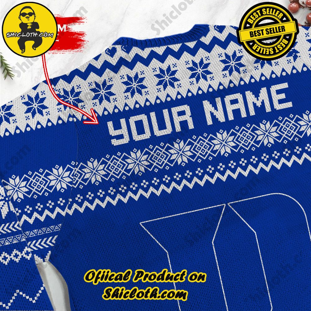 KEY FEATURES: NCAA Duke Blue Devils Grinch Custom Name Ugly Christmas Sweater
