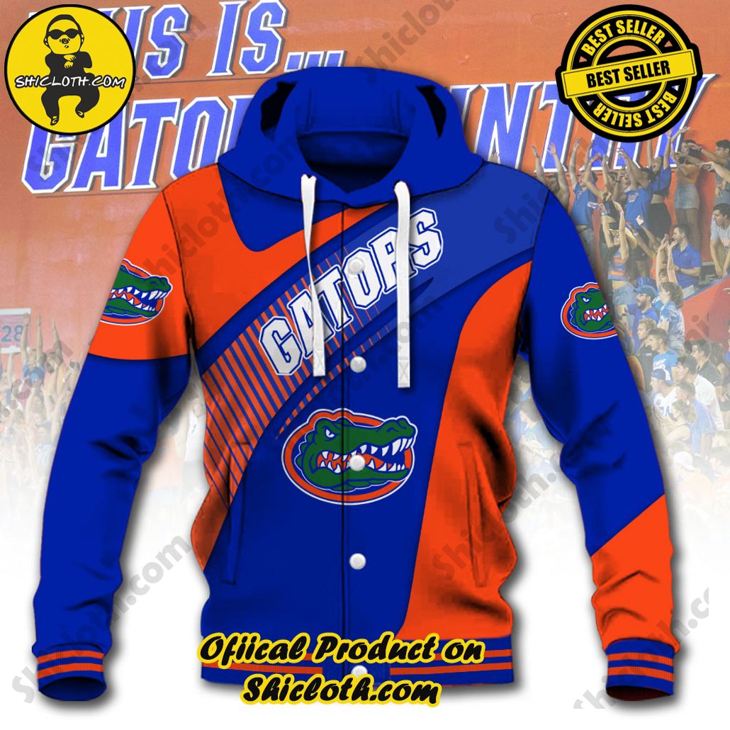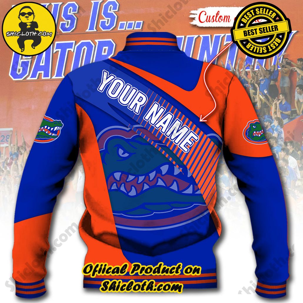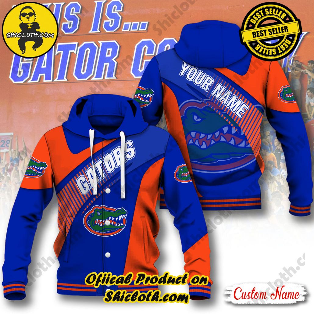 Overview of the NCAA Florida Gators Custom Name Baseball Jacket Hoodie New Ver: