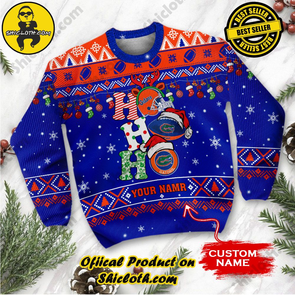 NCAA Florida Gators Ho Ho Ho Custom Name Ugly Christmasl Sweater