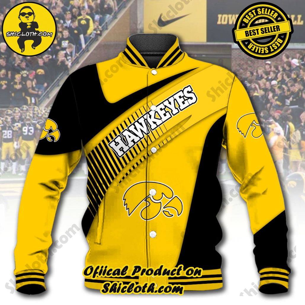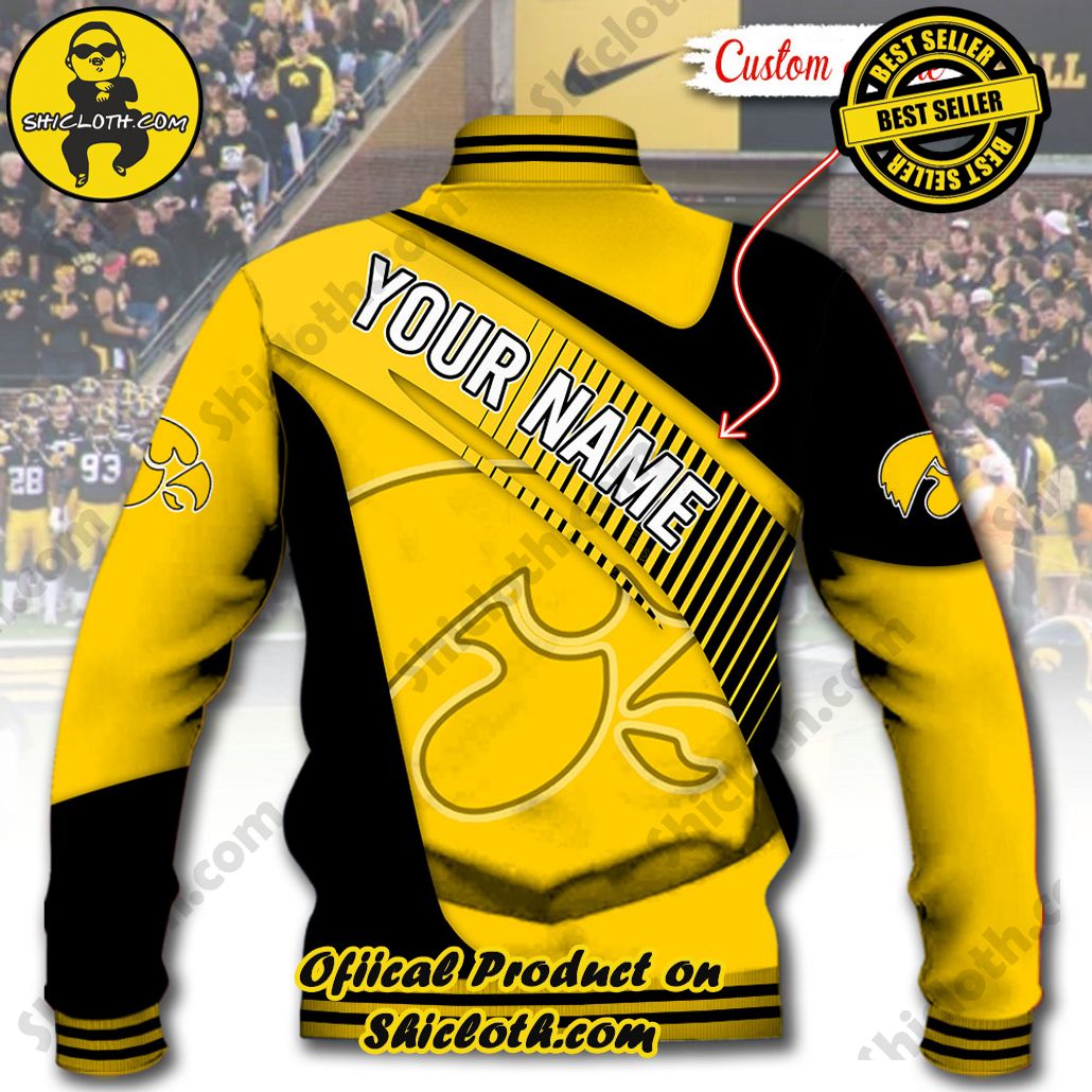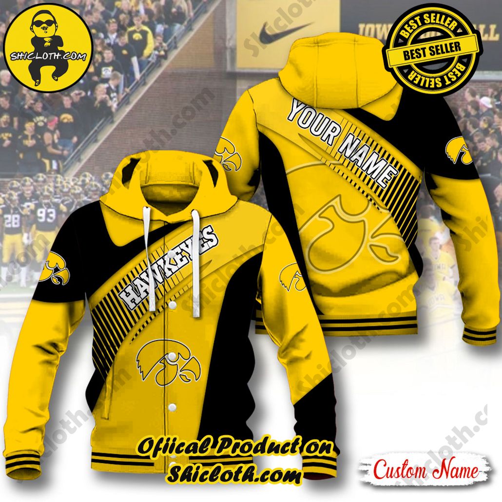 Overview of the NCAA Iowa Hawkeyes Custom Name Baseball Jacket Hoodie New Ver:
