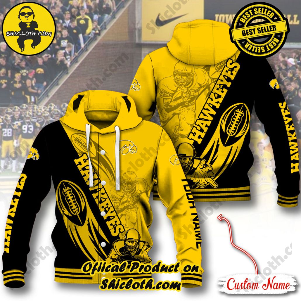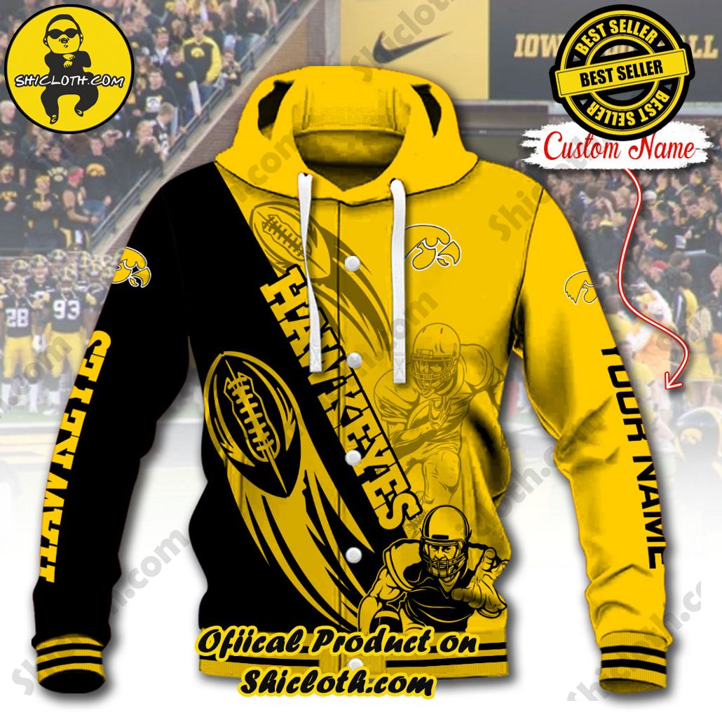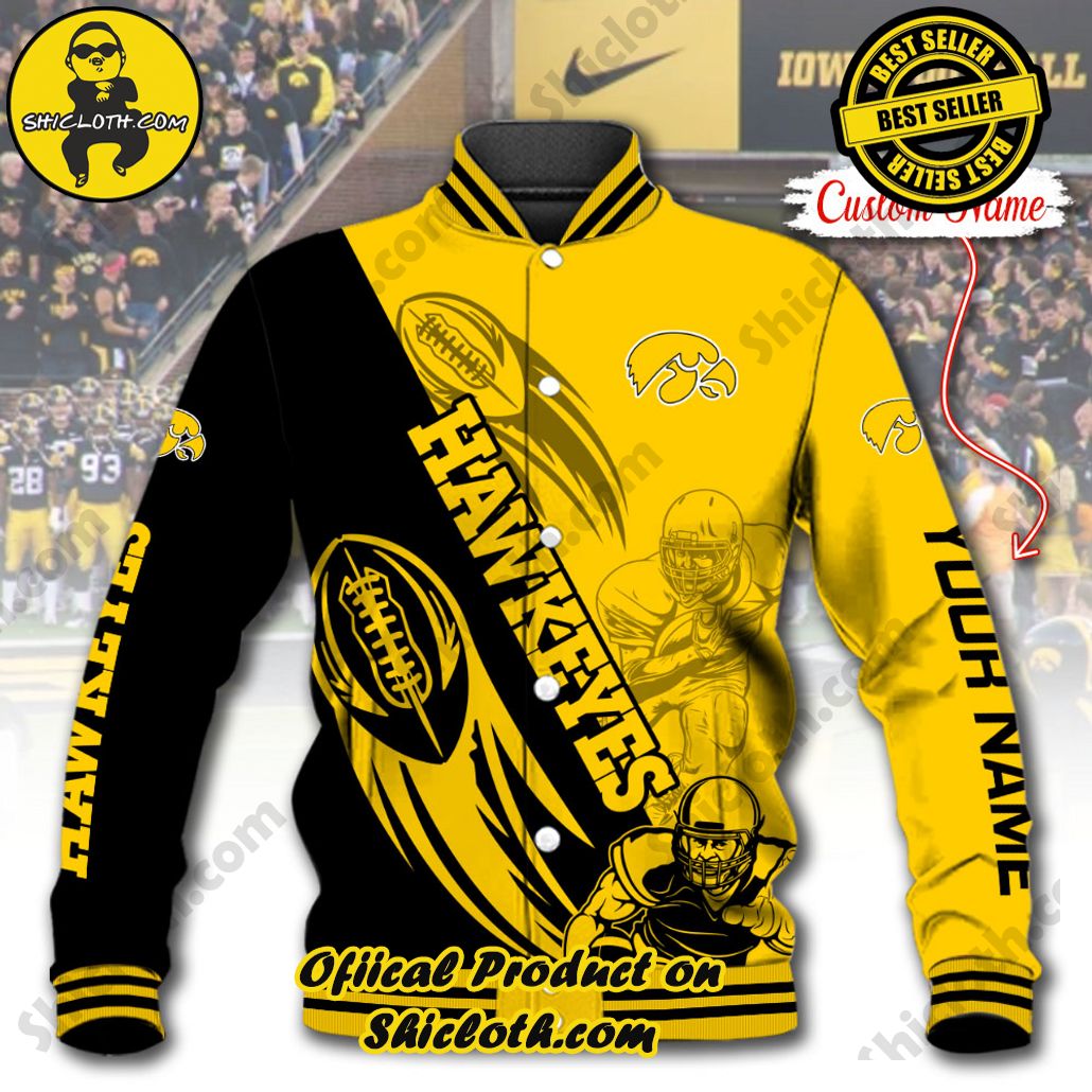 Overview of the NCAA Iowa Hawkeyes Custom Name Baseball Jacket Hoodie: