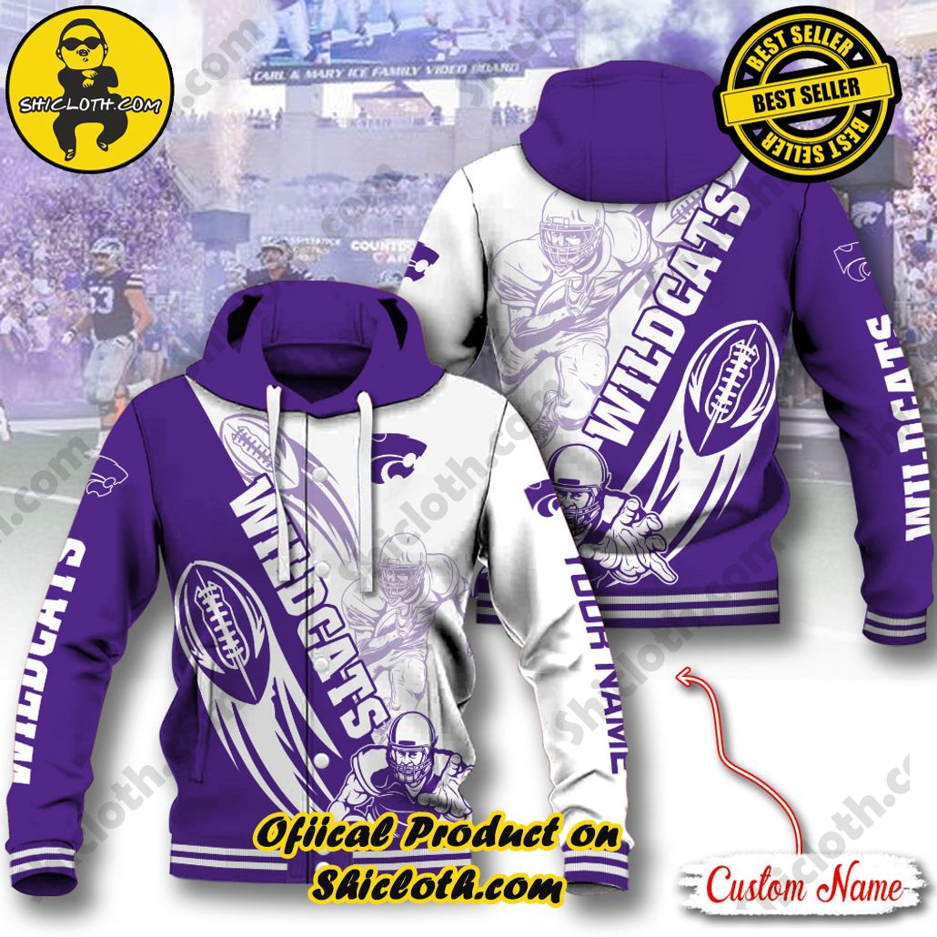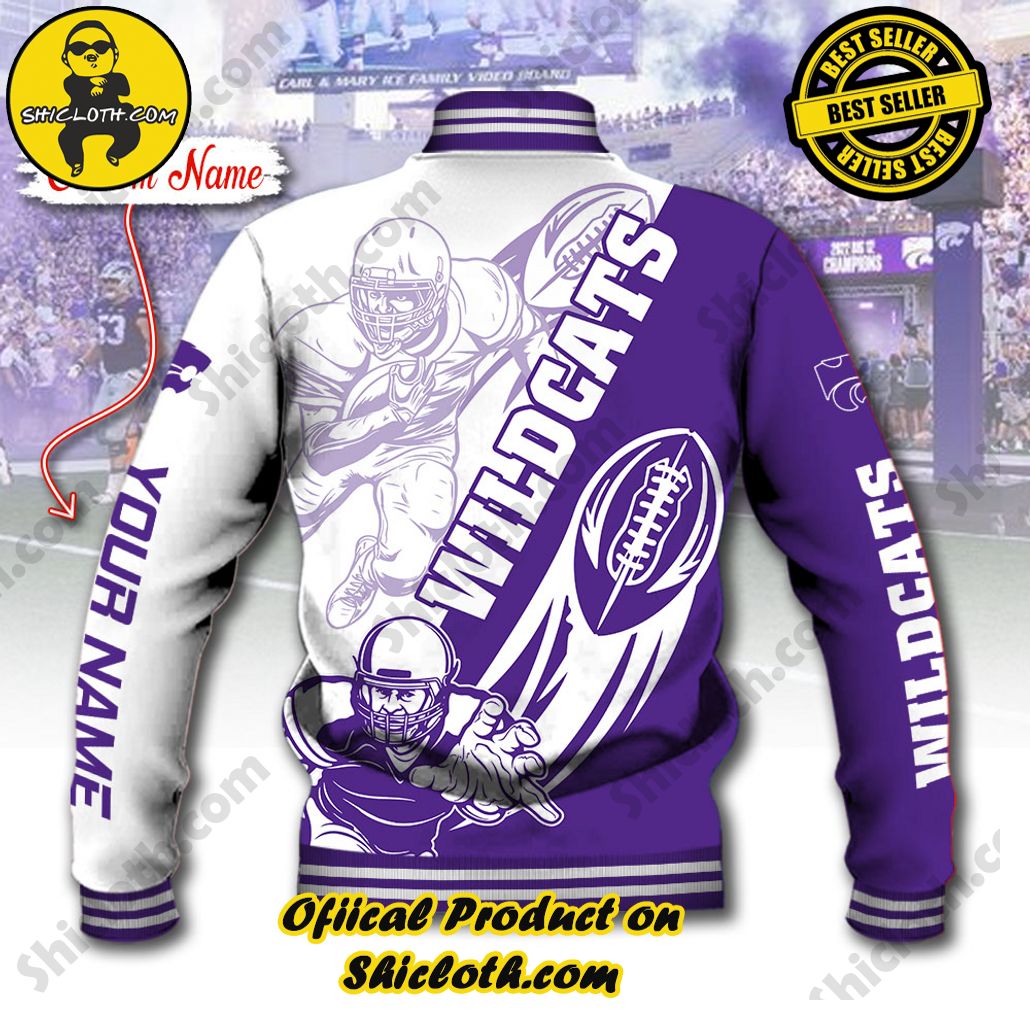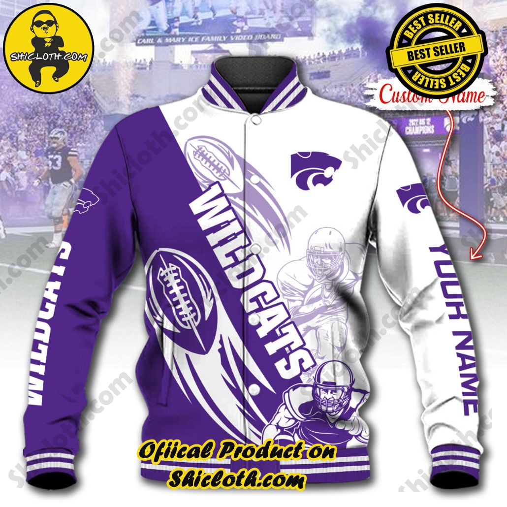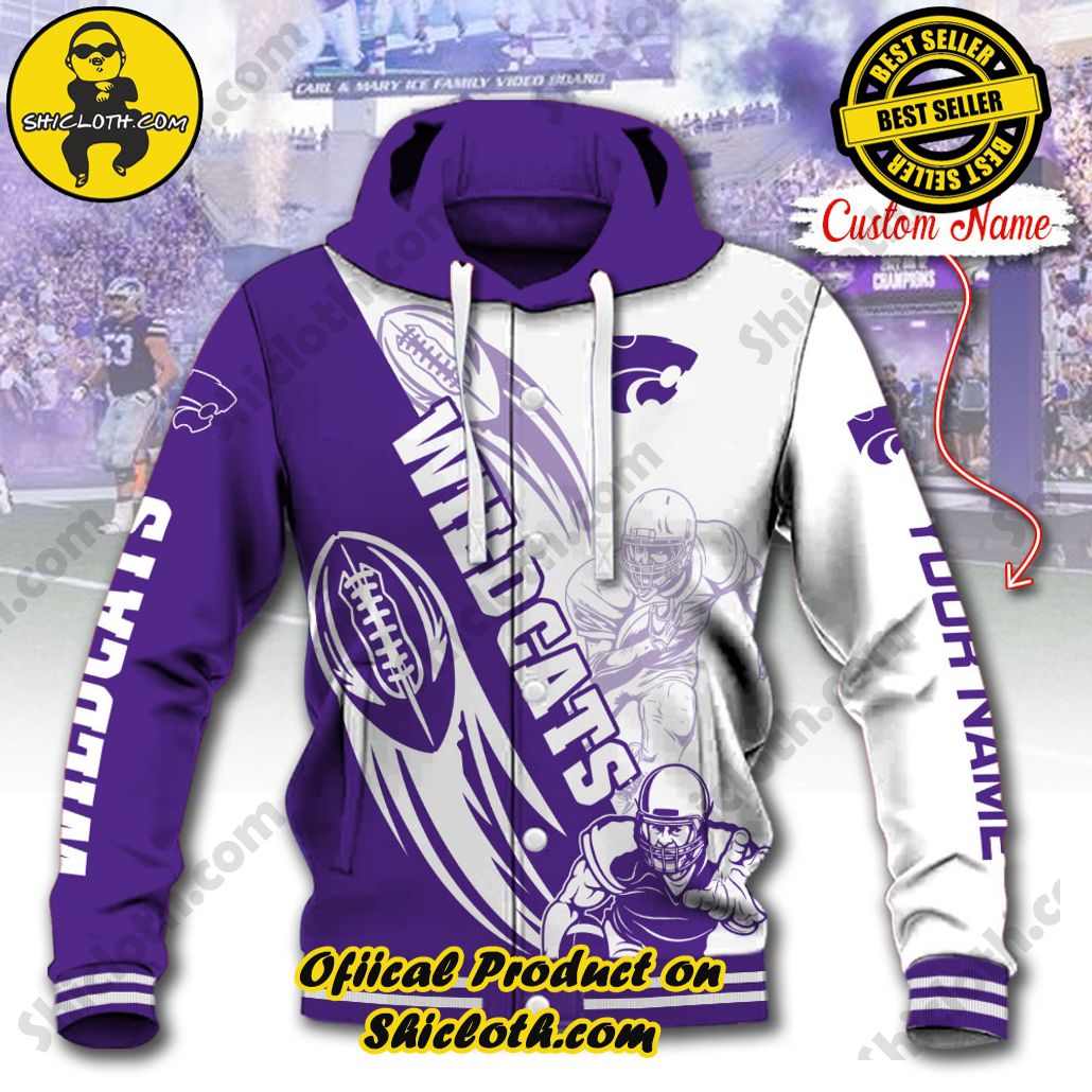 Overview of the NCAA Kansas State Wildcats Custom Name Baseball Jacket Hoodie: