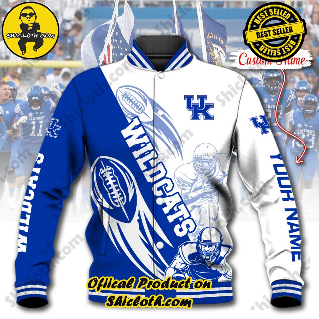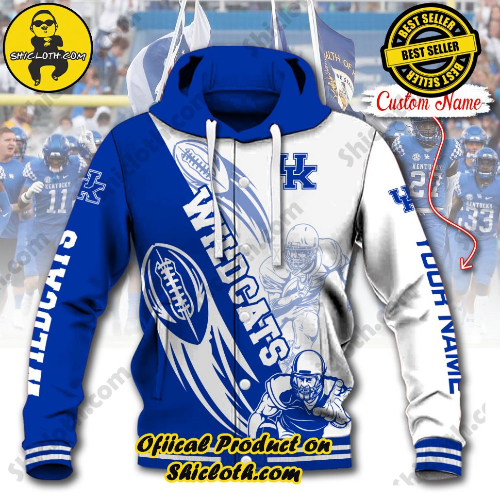 Overview of the NCAA Kentucky Wildcats Custom Name Baseball Jacket Hoodie: