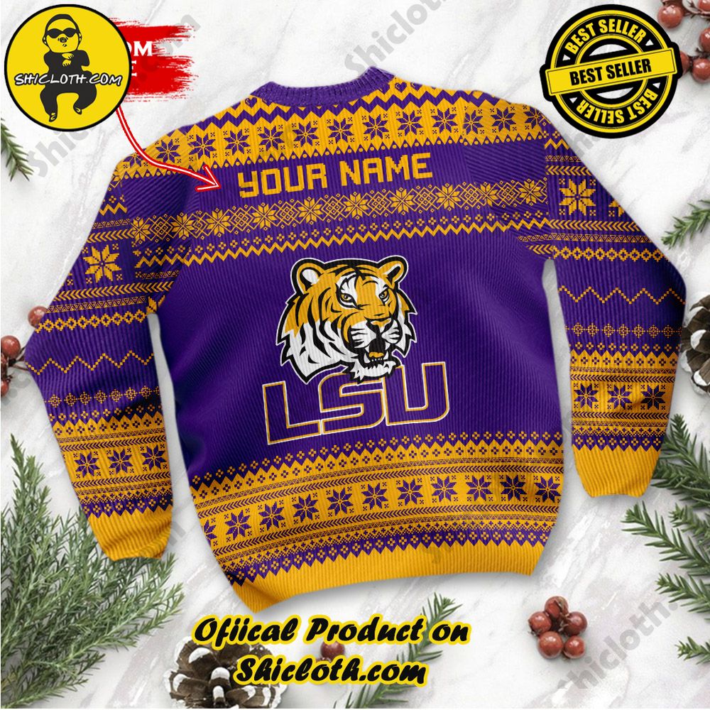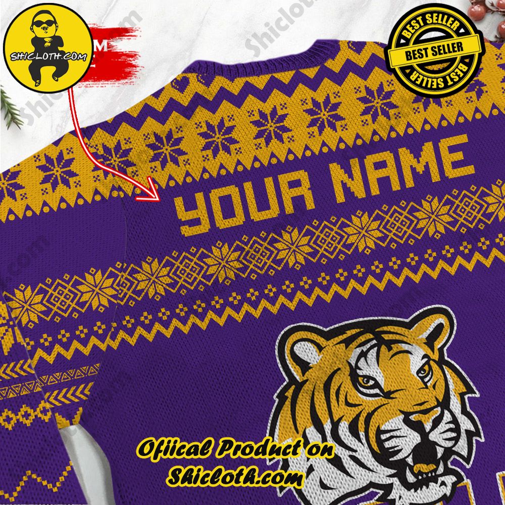 KEY FEATURES: NCAA LSU Tigers Grinch Custom Name Ugly Christmas Sweater
