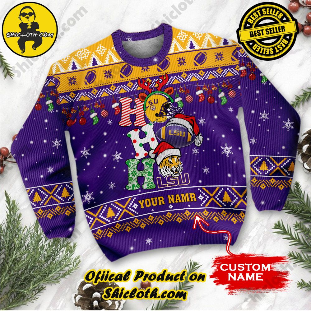 NCAA LSU Tigers Ho Ho Ho Custom Name Ugly Wool Sweater