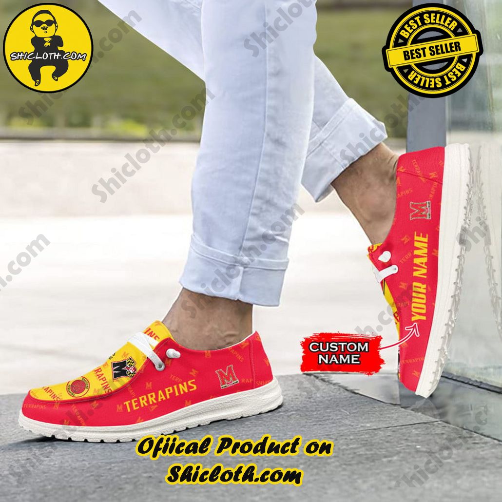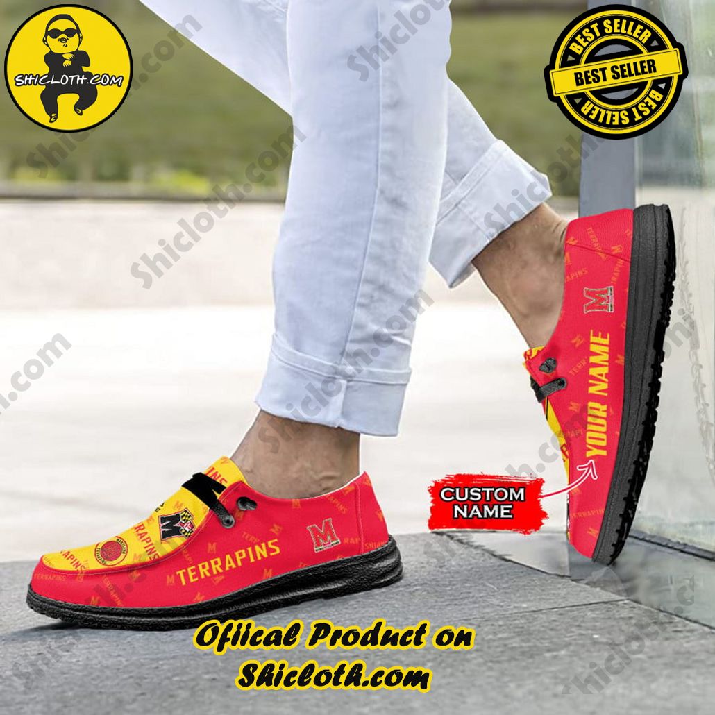 Overview of the NCAA Maryland Terrapins Custom Name Hey Dude Shoes:
