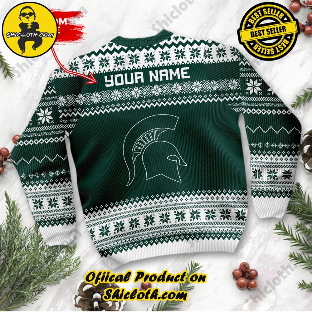 KEY FEATURES: NCAA Michigan State Spartans Grinch Custom Name Ugly Christmas Sweater