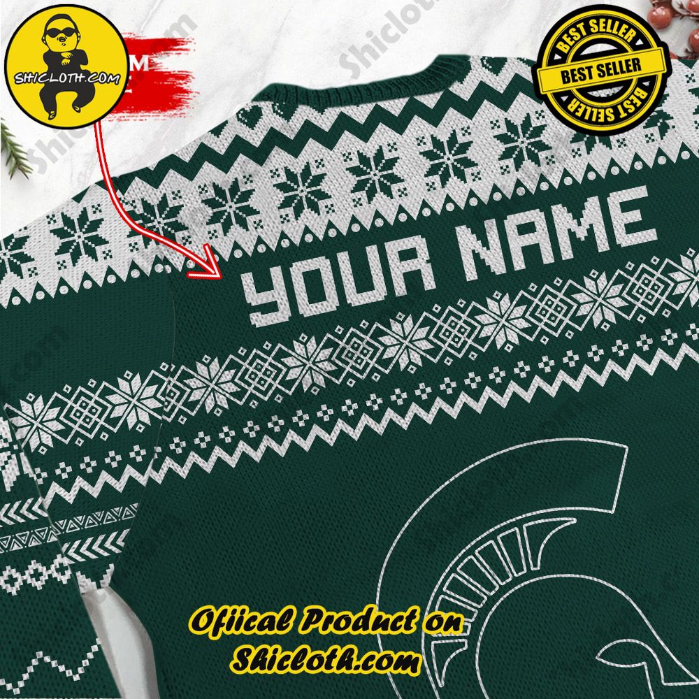 NCAA Michigan State Spartans Grinch Custom Name Ugly Christmas Sweater