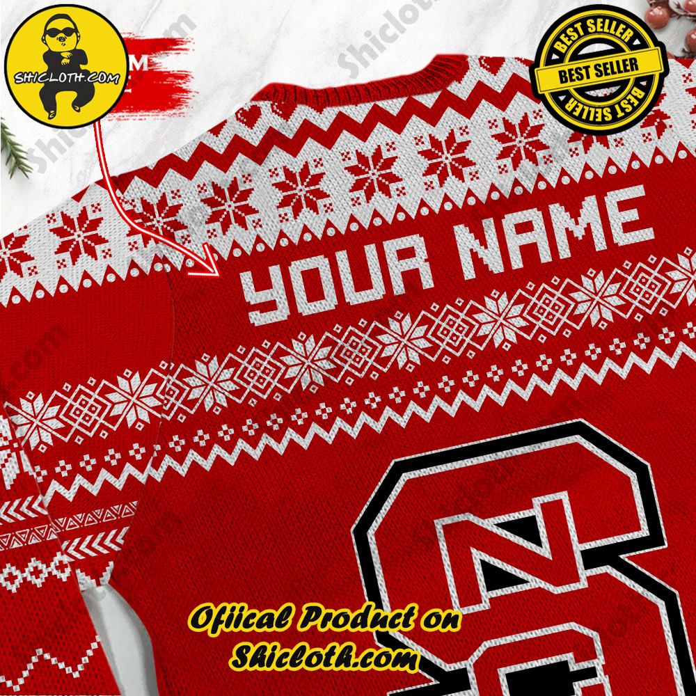 NCAA NC State Wolfpack Grinch Custom Name Ugly Christmas Sweater