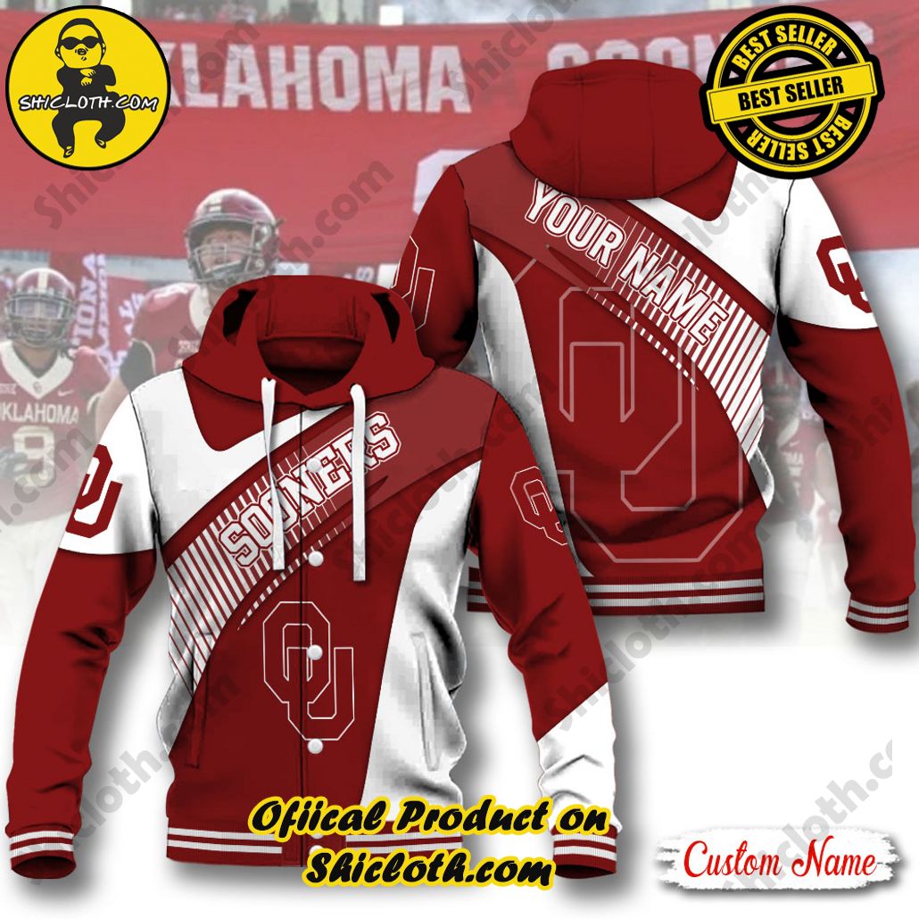 NCAA Oklahoma Sooners Custom Name Baseball Jacket Hoodie New Ver