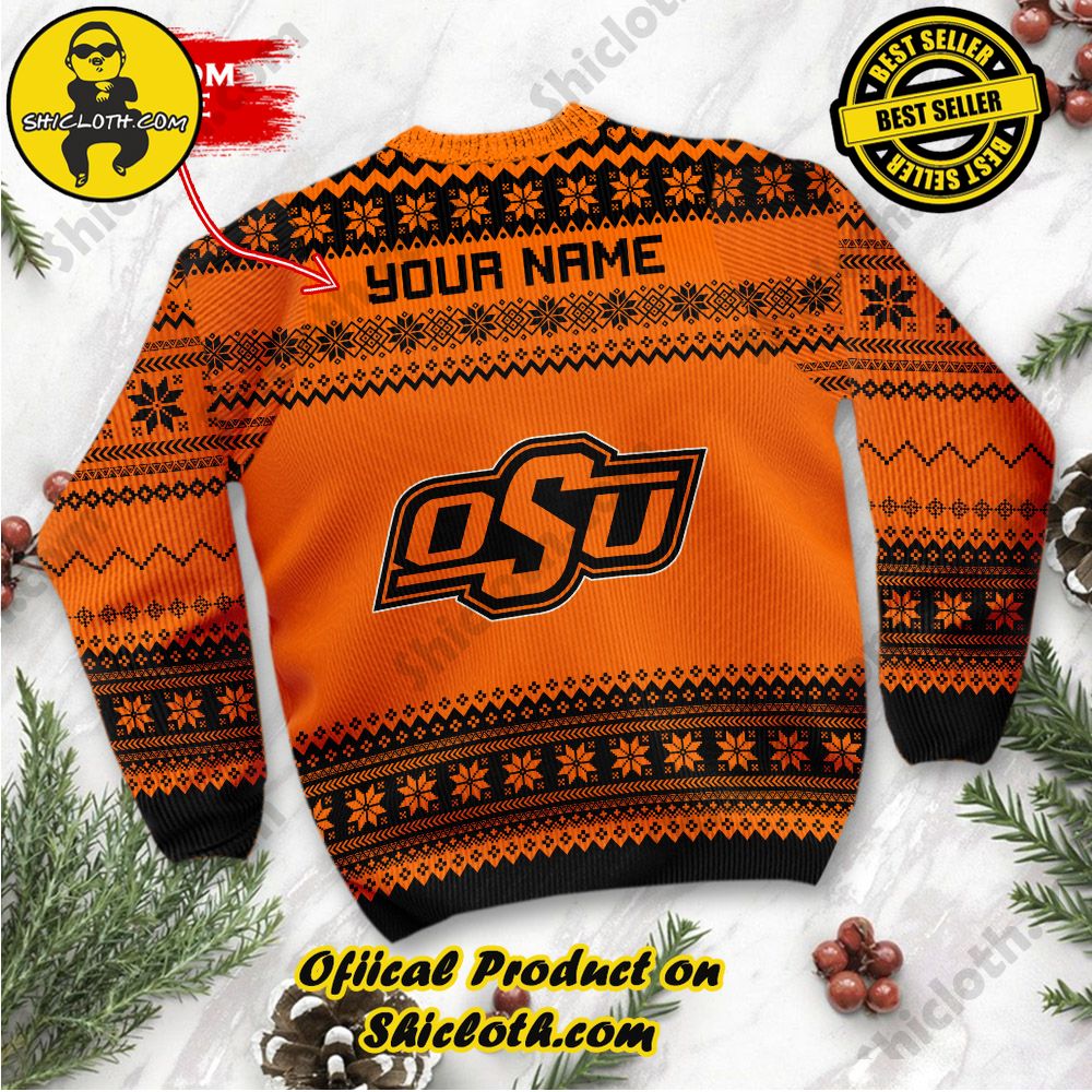 NCAA Oklahoma State Cowboys Grinch Custom Name Ugly Christmas Sweater