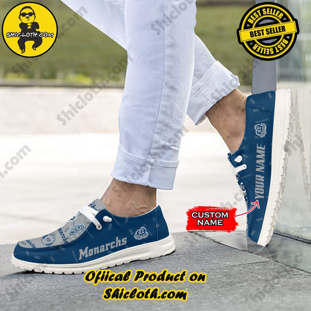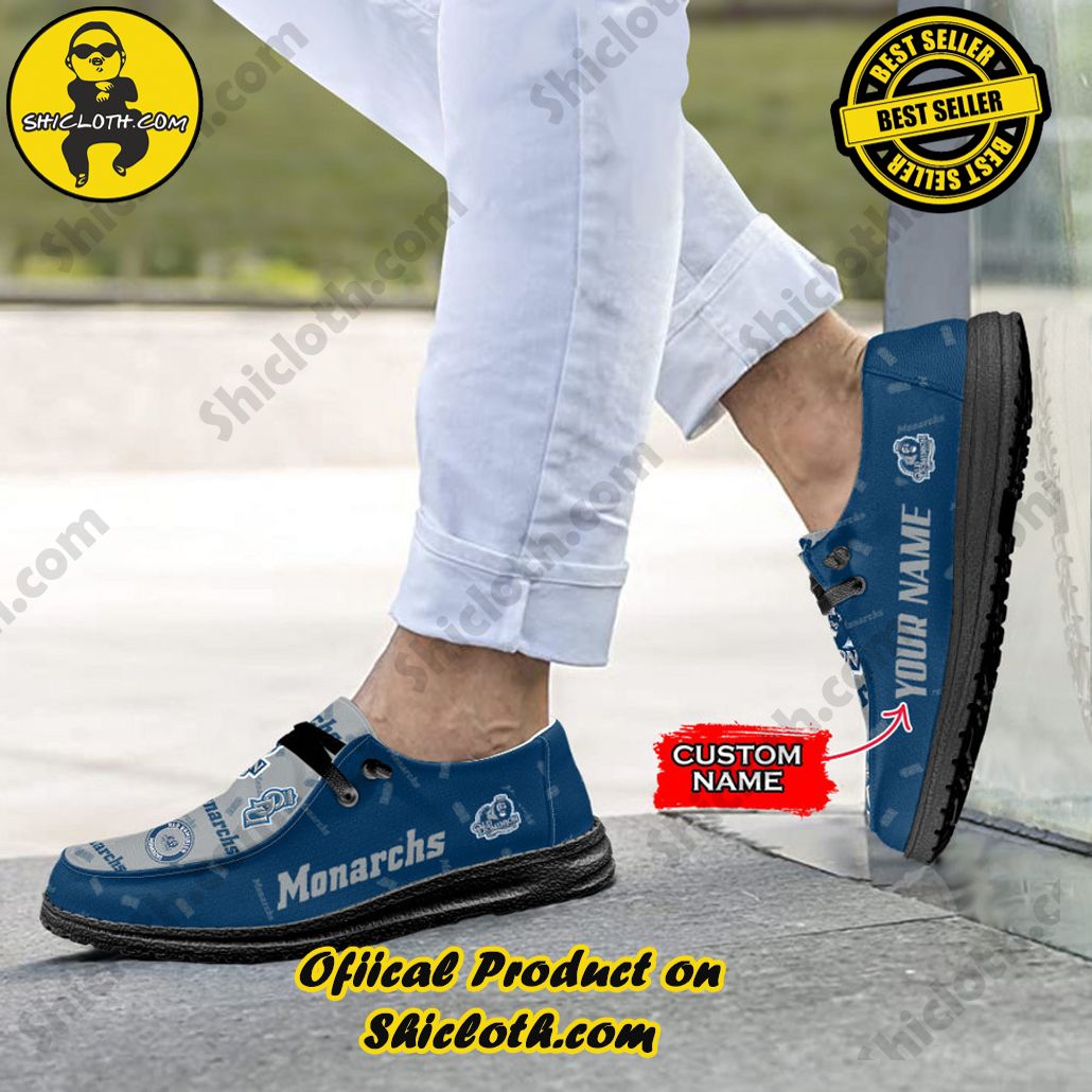 Overview of the NCAA Old Dominion Monarchs Custom Name Hey Dude Shoes:
