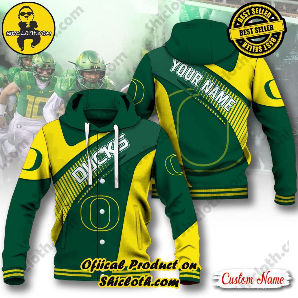 Product Information : NCAA Oregon Ducks Custom Name Baseball Jacket Hoodie New Ver