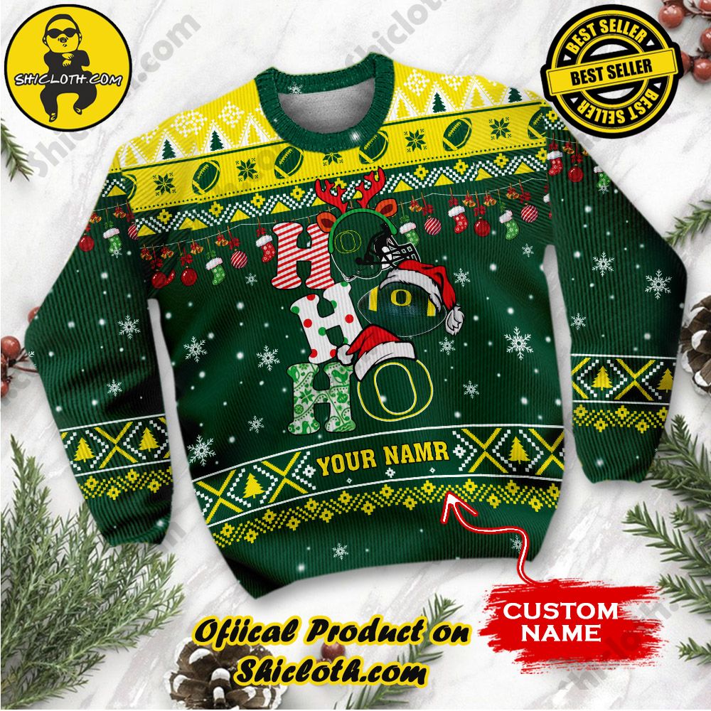 NCAA Oregon Ducks Ho Ho Ho Custom Name Ugly Christmasl Sweater