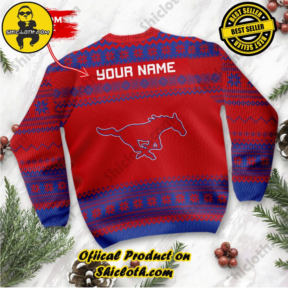 Based in the United States, we pride ourselves on our ability to ship worldwide. No matter where you are, you can enjoy the warmth, comfort, and festive spirit of the NCAA SMU Mustangs Grinch Custom Name Ugly Christmas Sweater. So why wait? Grab yours now and let your team spirit shine bright this holiday season!