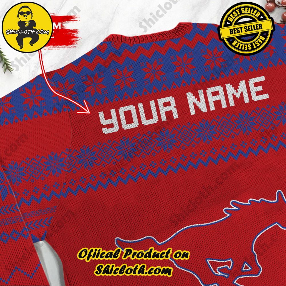 Introducing the NCAA SMU Mustangs Grinch Custom Name Ugly Christmas Sweater, the ultimate way to show off your team spirit and holiday cheer! Made with the best quality materials available in the market, this sweater guarantees utmost comfort, durability, and style. Whether you’re rocking it at a game, a Christmas party, or simply lounging around, this sweater will keep you warm and festive throughout the holiday season.