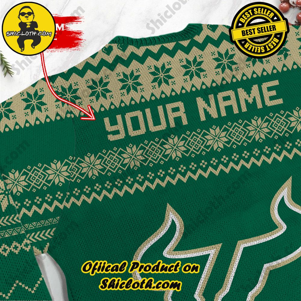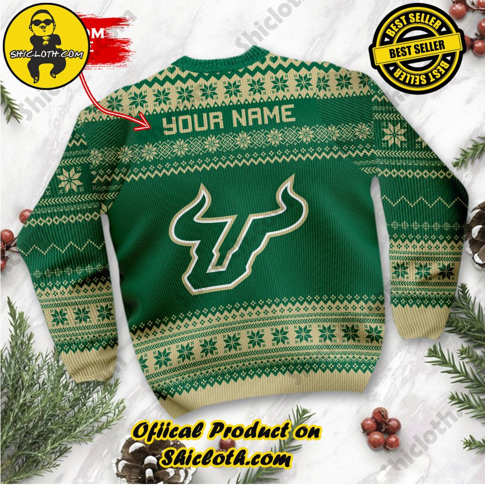 KEY FEATURES: NCAA South Florida Bulls Grinch Custom Name Ugly Christmas Sweater