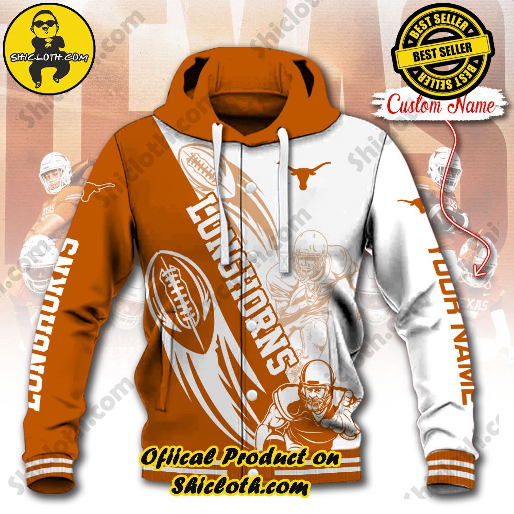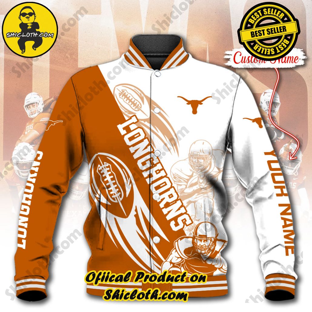 Product Information : NCAA Texas Longhorns Custom Name Baseball Jacket Hoodie