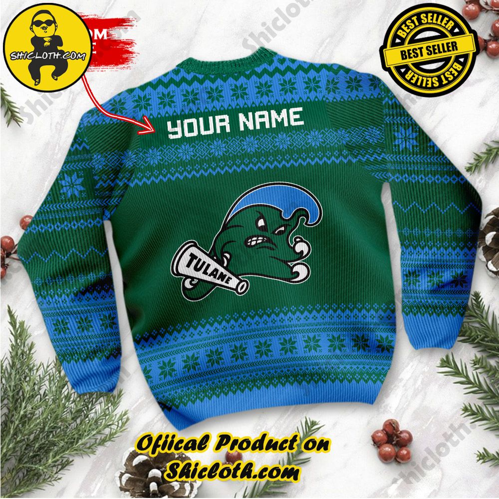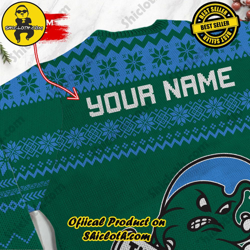 NCAA Tulane Green Wave Grinch Custom Name Ugly Christmas Sweater